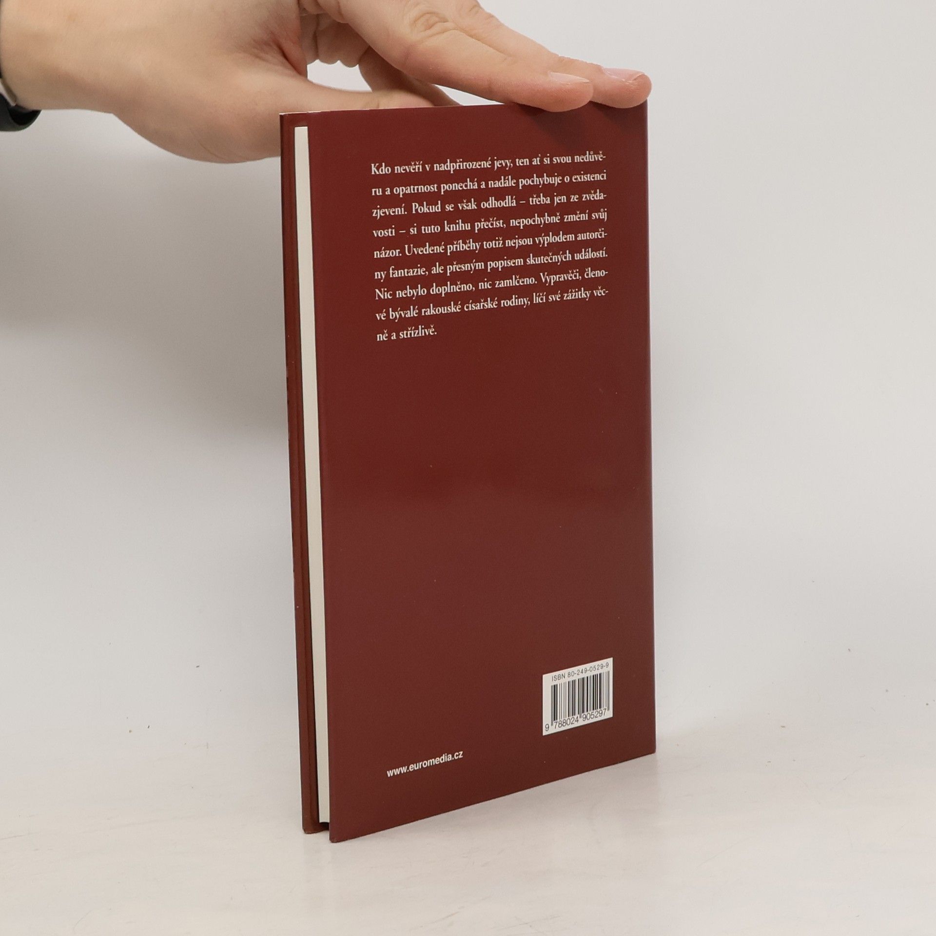 Podtitul: Bílá paní na Hofburgu a další zjevení Kniha o paranormálních jevech, různých zjeveních, předpovědích budoucnosti a jiných vizích, které jsou spjaty s habsburským rodem. Rakouská historička, která se specializuje na dějiny Habsburků se tentokrát soustřeďuje na nadpřirozené jevy, se kterými někteří členové rodiny přišli do styku. Vyprávění začíná v pozdním středověku a zabývá se Nostradamovými proroctvími, věštbami a dávnými (ale zaznamenanými) paranormálními jevy v habsburských sídlech. Autorka popisuje podle zachovaných záznamů údajných očitých svědků různá strašidla, záhadná zjevení, věštby, prokletí a další jevy. V tomto vyprávění pokračuje až do 20. století. Text doprovází množství fotografií, jak jmenovaných vznešených osobností, tak i snímky z různých spiritistických seancí, záhadných strašidelných domů aj. Celou knihu uzavírá "zasvěcený" rozbor parapsychologa a seznam použité (výhradně německé) literatury.... celý text