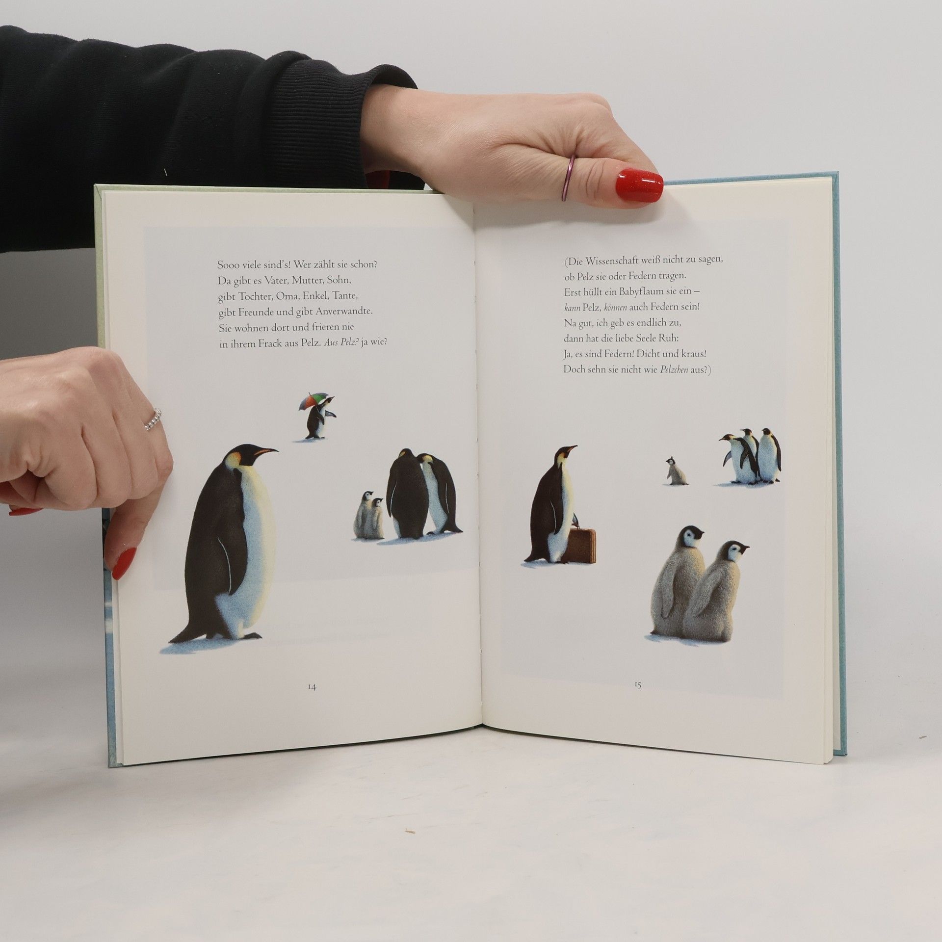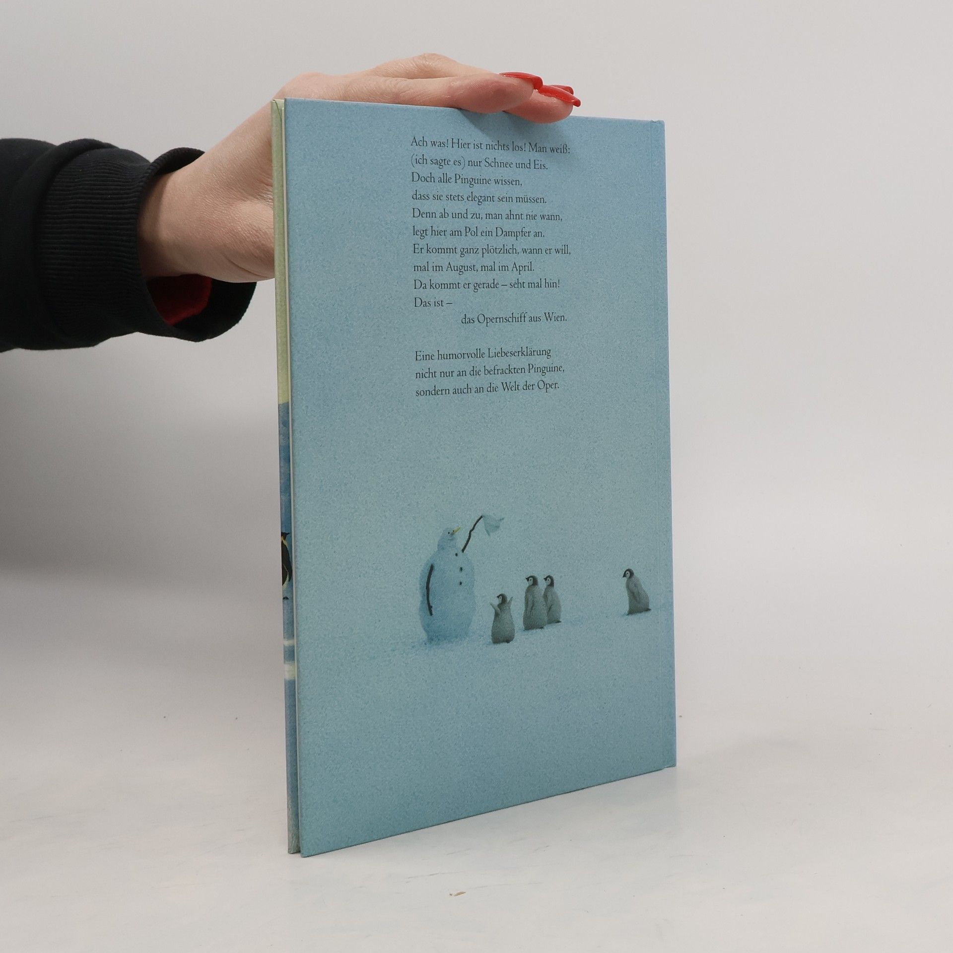Am Südpol stehen sich die Pinguine die Beine in den Bauch. Geduldig harren sie der Dinge, die da kommen werden, und sie sind immer perfekt im Frack. Worauf sie warten? Elke Heidenreich hat es Gott sei Dank herausgefunden: Nicht allzu oft, doch dann und wann, kommt das Opernschiff aus Wien und lädt die Pinguine zur großen Operngala an Bord. Für diesen Tag wollen sie jederzeit gerüstet sein. Was diesmal wohl gespielt wird? Wer dieses Mal wohl singt? Man glaubt es kaum, die drei Tenöre. Und wenn sie »La Traviata« trällern, wird selbst den unterkühlten Pinguinen ganz heiß - aber auch nach der Vorstellung stehen sie so adrett da wie immer!