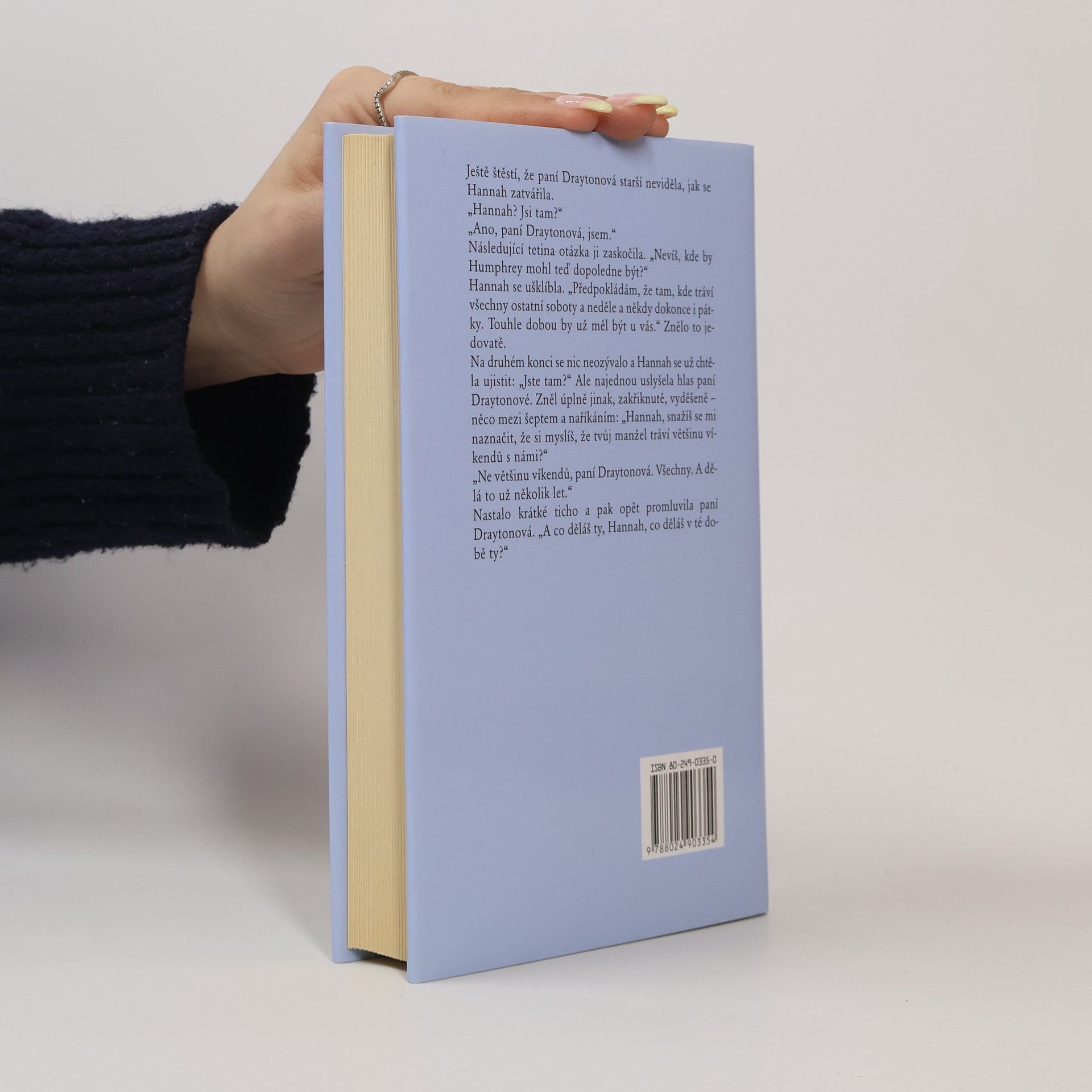 Hannah Draytonová je čtyři roky vdaná, ale v jejím manželství to neklape. Aspoň Hannah má ten pocit. Její muž Humphrey je sice stále vlídný a zdvořilý, nicméně se chová podivně. Odstěhoval se ze společné ložnice a spí v pokoji pro hosty, přestože Hannah zoufale touží po dítěti. Do společnosti manželku příliš často nevodí, nemůže ji doprovodit ani do divadla a často ji nechává samotnou. Samozřejmě má pro své jednání vždy závažný důvod. Ve čtvrtek chodí pravidelně hrát bridž a víkendy tráví na venkově u stárnoucí tety a strýce, kteří ho vychovali. Hannah si s příbuznými nerozumí: nikdy ji nepřijali do rodiny, protože podle nich se drahý Humphrey mohl oženit mnohem lépe. Osamělá Hannah hledá náplň pro své prázdné dny a přemýšlí, jestli tak jako ona žijí i jiné manželské páry. Utíká se k psaní pohádek pro děti a uvažuje o tom, že je vydá knižně, přestože se jí to Humphrey snaží vymluvit. V den, kdy navštíví nakladatele Gillymana a seznámí se s jeho asistentem Davidem Craventonem, se však změní celý její dosavadní život. Tajné, byť zpočátku zcela nevinné schůzky s Davidem jí dodávají sílu a radost ze života, ačkoli ji trochu trápí výčitky svědomí. Hannah však netuší, že nově probuzená náklonnost může zničit mnohem víc než její prázdné a vyprahlé manželství.
