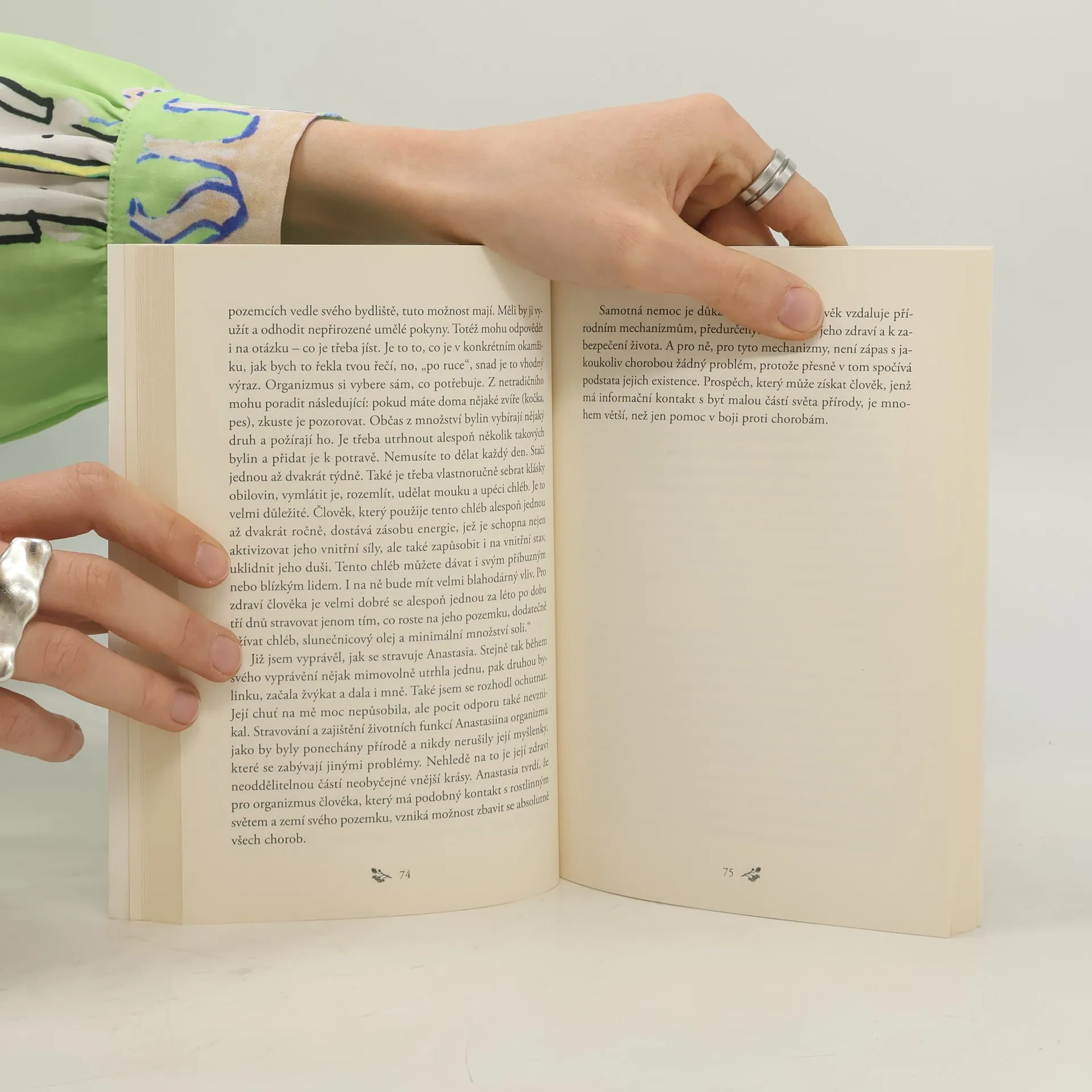 V první knize mladá poustevnice Anastasia odpovídá na řadu otázek týkajících se zdravého způsobu života, šťastného vztahu mezi mužem a ženou, početí a výchovy dětí. Zároveň poskytuje užitečné rady v oblasti zahrádkaření a ekologie, které jsou geniální svou jednoduchostí.
