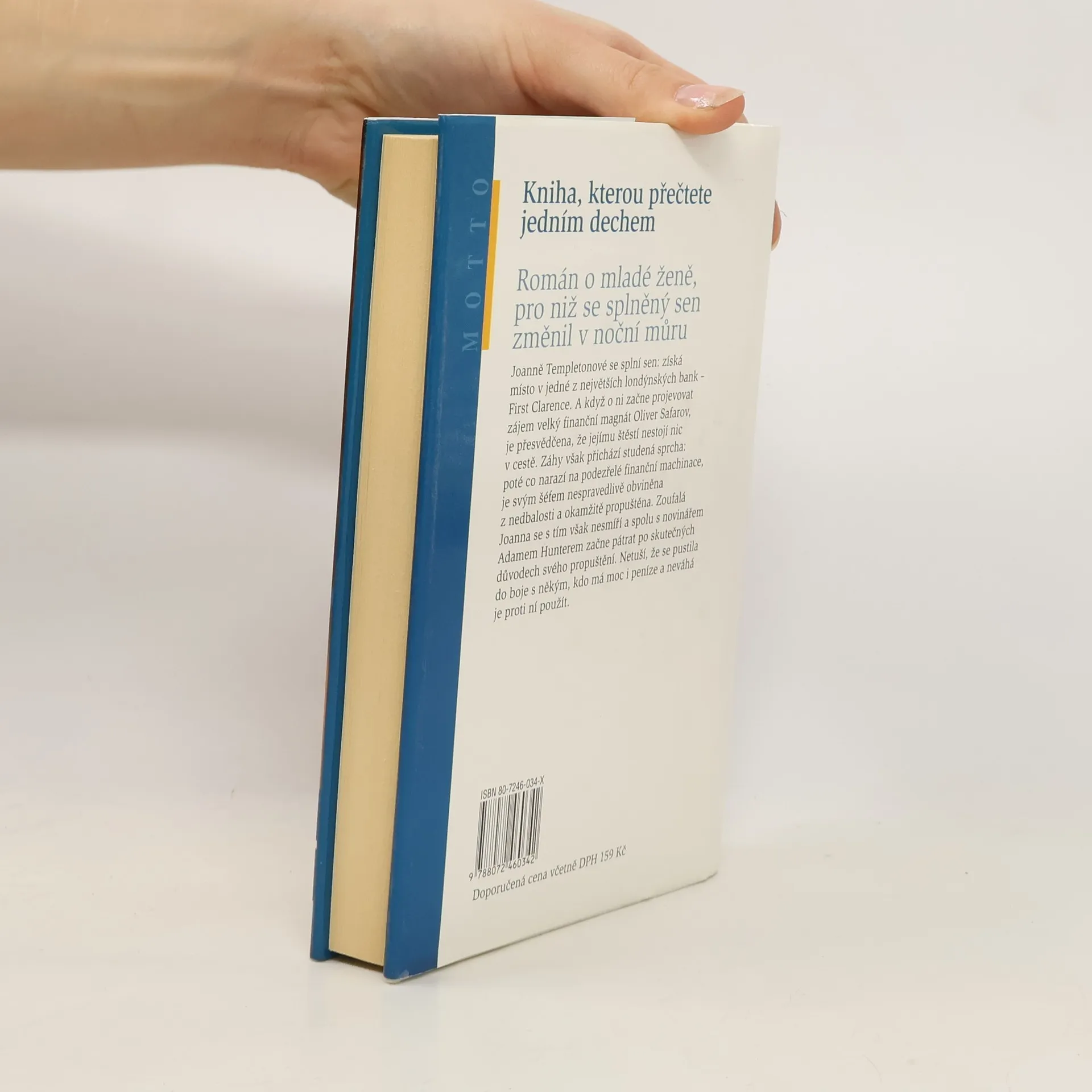 Román o mladé ženě, pro niž se splněný sen změnil v noční můru Joanně Templetonové se splní sen: získá místo v jedné z největších londýnských bank - First Clarence. A když o ni začne projevovat zájem velký finanční magnát Oliver Safarov, je přesvědčena, že jejímu štěstí nestojí nic v cestě. Záhy však přichází studená sprcha: poté co narazí na podezřelé finanční machinace, je svým šéfem nespravedlivě obviněna z nedbalosti a okamžitě propuštěna. Zoufalá Joanna se s tím však nesmíří a spolu s novinářem Adamem Hunterem začne pátrat po skutečných důvodech svého propuštění. Netuší, že se pustila do boje s někým, kdo má moc i peníze a neváhá je proti ní použít.