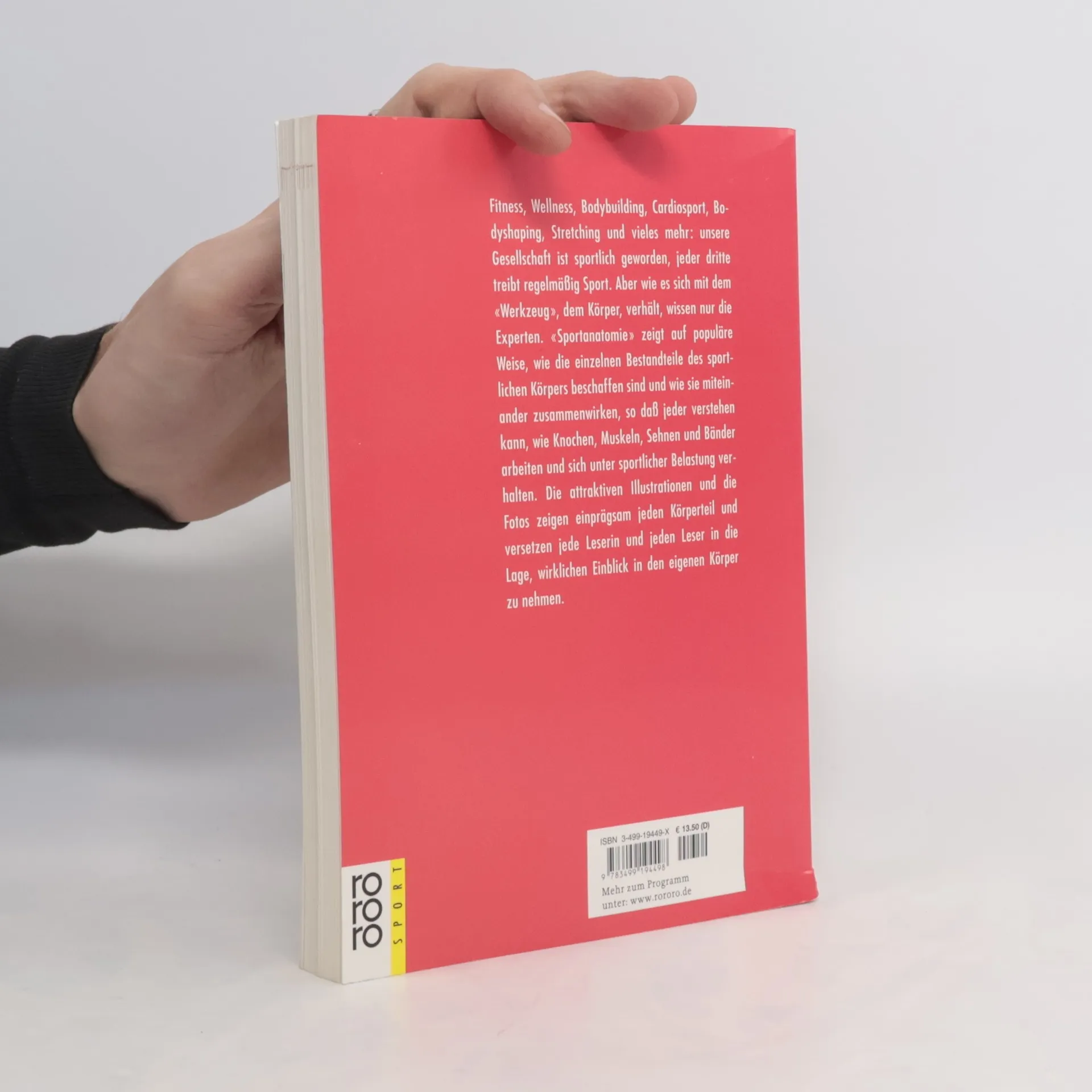 Unsere Gesellschaft ist sportlich geworden, jeder dritte treibt regelmässig Sport. Aber wie es sich mit dem "Werkzeug", dem Körper, verhält, wissen nur die Experten. Dieses Buch zeigt auf populäre Weise, wie die einzelnen Bestandteile des sportlichen Körpers beschaffen sind und wie sie miteinander zusammenwirken, so dass jeder verstehen kann, wie Knochen, Muskeln, Sehnen und Bänder arbeiten und sich unter sportlicher Belastung verhalten. Die attraktiven Illustrationen und die Fotos zeigen einprägsam jeden Körperteil und versetzen jede Leserin und jeden Leser in die Lage, wirklichen Einblick in den eigenen Körper zu nehmen.