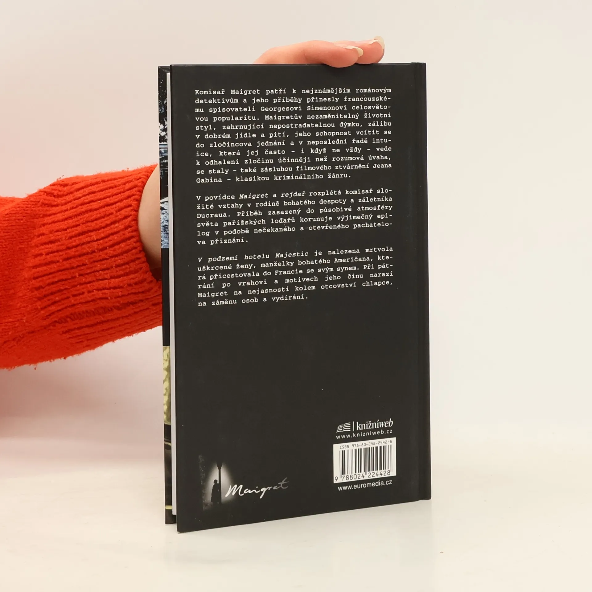 Komisař Maigret patří k nejznámějším románovým detektivům a jeho příběhy přinesly francouzskému spisovateli Georgesovi Simenonovi celosvětovou popularitu. Maigretův nezaměnitelný životní styl, zahrnující nepostradatelnou dýmku, zálibu v dobrém jídle a pití, jeho schopnost vcítit se do zločincova jednání a v neposlední řadě intuice, která jej často – i když ne vždy – vede k odhalení zločinu účinněji než rozumová úvaha, se staly – také zásluhou filmového ztvárnění Jeana Gabina – klasikou kriminálního žánru. V povídce Maigret a rejdař rozplétá komisař složité vztahy v rodině bohatého despoty a záletníka Ducraua. Příběh zasazený do působivé atmosféry světa pařížských loďařů korunuje výjimečný epilog – nečekaně otevřené pachatelovo přiznání. V podzemí hotelu Majestic je nalezena mrtvola uškrcené ženy, manželky bohatého Američana, která přicestovala do Francie se svým synem. Pátrání po vrahovi a motivech jeho činu znesnadňují Maigretovi nejasnosti kolem otcovství chlapce, záměna osob a vydírání.