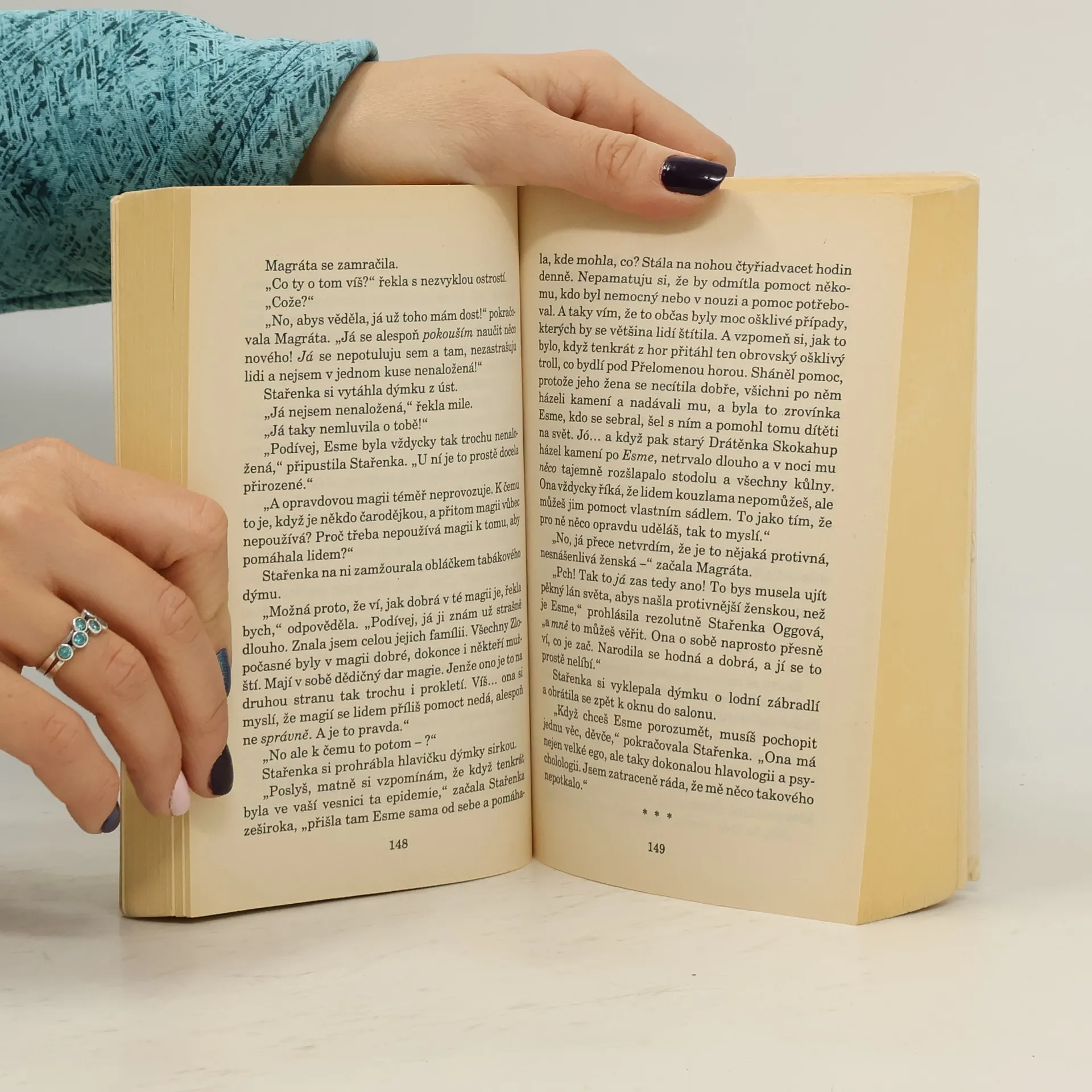Celé poslání se jevilo velmi jednoduché. Koneckonců, co těžkého je na tom, postarat se, aby si obyčejné služebné děvče nevzalo prince, zvláště když ho nechce? Jenže poněkud netýkavá a samolibá kmotřička sudička tak jednou rozhodla a na sňatku trvá. Bábi Zlopočasná, Stařenka Oggová a Magráta Česneková chtějí ubohému děvčeti pomoci, a vydávají se proto na cestu do dalekého města Genovy. Háček je v tom, že kromě svých kouzel, založených především na hlavologii, s sebou mají pouze tajemné vúdú paní Gogolové, jednookého kocoura Silvera a magickou hůlku, která dokáže jediné - vykouzlit dýně. Úžasná Zeměplocha, kniha 12., přeložil Jan Kantůrek.