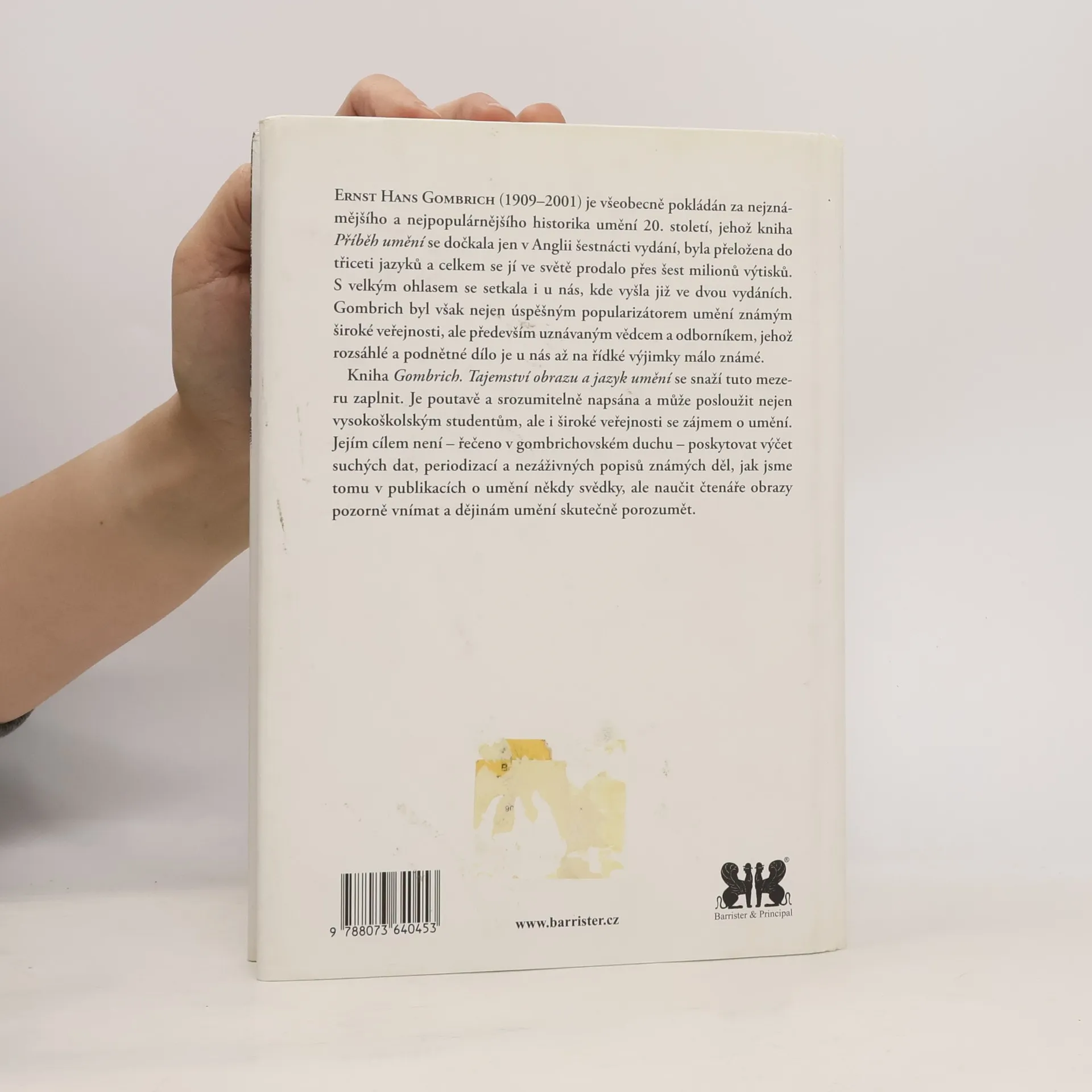 Kniha Gombrich. Tajemství obrazu a jazyk umění vznikla na základě autorova mnohaletého zájmu o otázky spojené se vznikem a interpretací uměleckého díla. Přestože nejde o monografii v přísném slova smyslu, srozumitelně vykládá hlavní myšlenky E. H. Gombricha a rozebírá i teorie jeho významných vídeňských současníků, kteří ho ovlivnili (např. filosofa Karla R. Poppera či etologa Konrada Lorenze), a některých jeho následovníků. Autor se neomezuje pouze na dějiny umění, ale pohybuje se v oblasti estetiky, filosofie, psychologie a také sociobiologie. Výsledkem je osobitý a komplexní úvod do teorie či psychologie obrazového znázorňování, fascinujícího oboru, který u nás nebyl dosud plně reflektován, i když vlastně ve středoevropském kulturním prostoru vznikl.