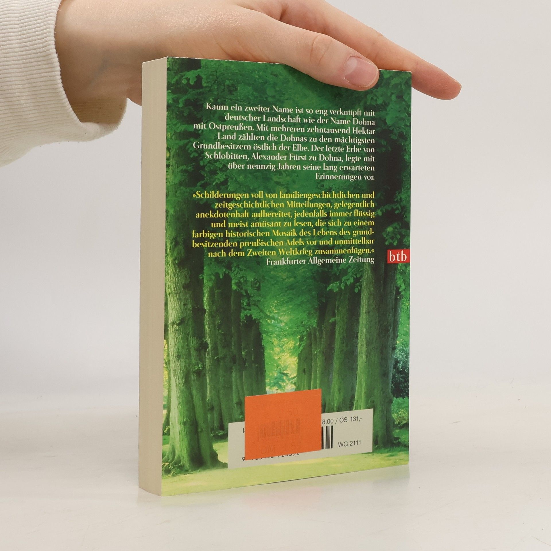 Kaum ein zweiter Name in der deutschen Geschichte is so eng verknüpft mit deutscher Landschaft wie der Name Dohna mit Ostpreußen. Mit mehreren zehntausend Hektar Land zählten die Dohnas zu den mächtigsten Großgrundbesitzern östlich der Elbe. Der letzte Erbe von Schlobitten, Alexander Fürst zu Dohna, legte mit über neunzig Jahren seine lang erwarteten Erinnerungen vor, die mit Recht als ein Juwel in der Ostpreußen-Literatur gelten dürfen.