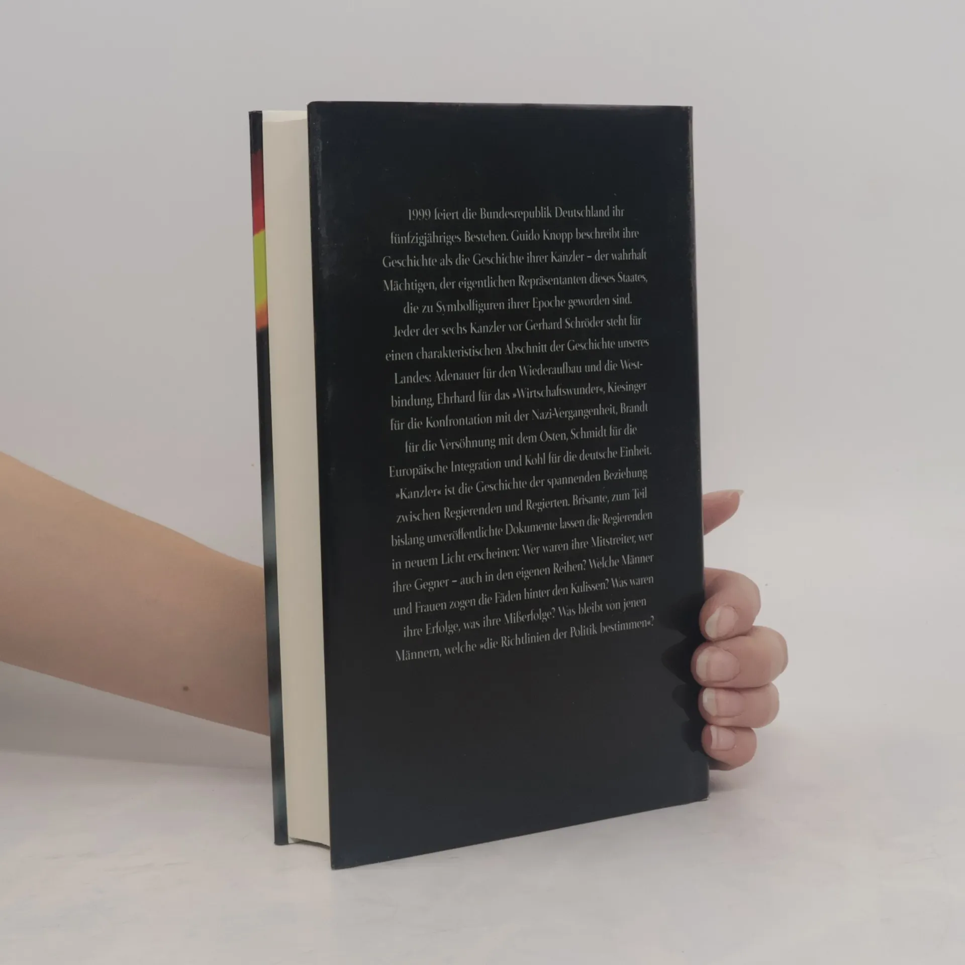 The 50th anniversary of the Federal Republic of Germany was celebrated in May 1999. Now Guido Knopp celebrates the history of this nation in "Kanzler". Rather than focusing on specific moments in Germany's history, Knopp documents the reigns of its seven chancellors - Konrad Adenauer, Ludwig Erhardt, Kurt-Georg Kiesinger, Willy Brandt, Helmut Schmidt, Helmut Kohl and Gerhard Schröder. He attempts to answer questions such How is power exercised? Who pulls the strings in the Chancellor's Office? Who are the authoritative advisors of the government heads? Who are their rivals? Once again Guido Knopp delivers proof of just how exciting history can be. In particular he shows that many facets of post-war politics in Germany have remained undisclosed to the public.Im September 2002 steht die nächste Bundestagswahl Wird Gerhard Schröder erneut das Vertrauen der Mehrheit gewinnen? Bei den früheren Wahlen haben die Wähler stets ein gutes Gespür dafür bewiesen, wem sie die mächtigste politische Position anvertrauten. Um sich ein fundiertes Urteil über die Leistungen und Schwächen Schröders bilden zu können, zieht Guido Knopp eine Bilanz seiner Hat es tatsächlich den 1998 von einer Mehrheit der Bundesbürger erhofften Umschwung gegeben? Welche Reformen waren erfolgreich, welche sind stecken geblieben oder nicht angepackt worden? Von Schröders Vorgänger Kohl, dem Kanzler der Einheit, dessen Arbeit und Regierungsstil wegen der Spendenaffäre