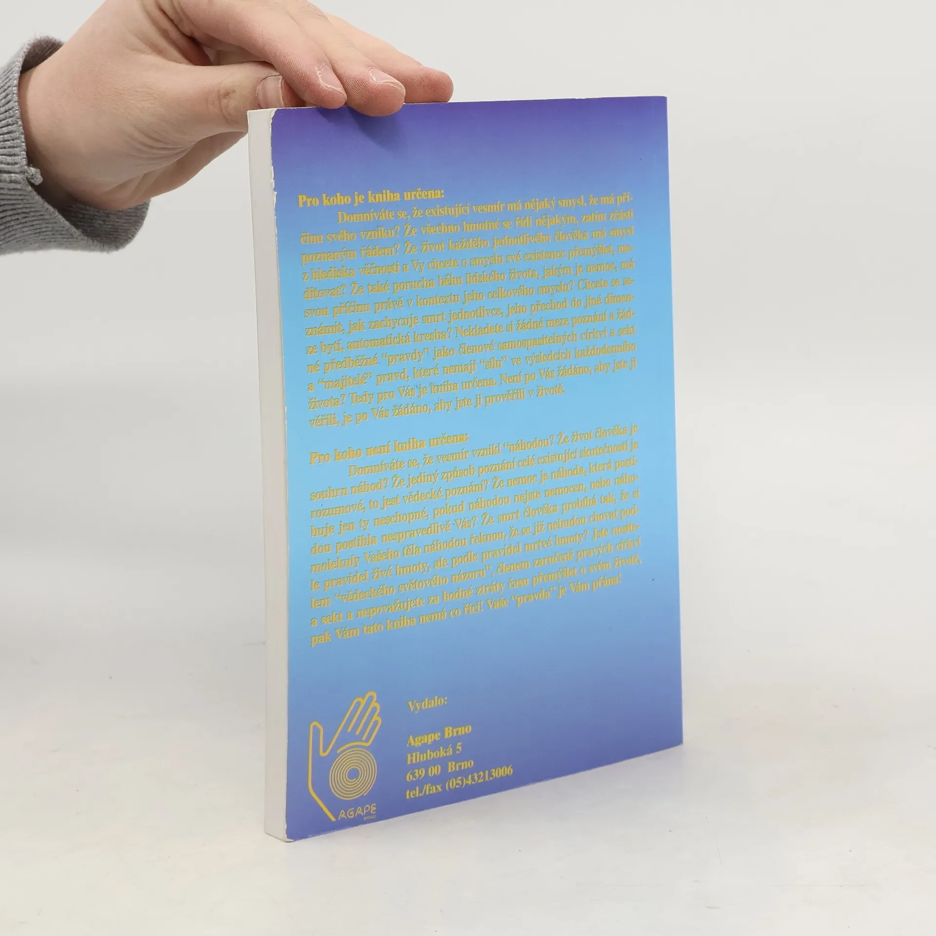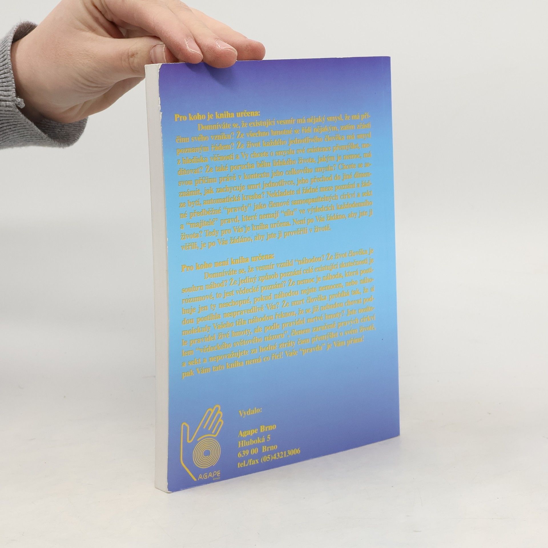 Současná medicína sice detailně popíše tělo člověka a průběh procesů nemocí, není však schopna odpovědět, proč člověk žije a proč je nemocen. Těmito otázkami se mohou zabývat jen ty obory, jejichž předmětem poznání jsou dimenze bytí, které byly ještě před vznikem hmotného. Tato dimenze je označována jako duchovní a základním způsobem jejího nazírání na veškeré dění je z hlediska věčnosti Knih, popisujících duchovní příčiny nemocí, je mnoho. Mnohé vyšly i u nás v překladu. Za nejlepší je možné jmenovat Dethlefsenovu „Nemoc jako cestu“ a Lazarevovu „Diagnostiku karmy“. Avšak žádná z těchto knih, které se ve světě a u nás tímto tématem zabývají, neobsahuje to, co obsahuje navíc tato kniha: praktický návod na východisko ze situace, to jest meditační modlitbu – mantru, zaměřenou na neutralizaci špatného duchovního směřování člověka, které zmíněnou nemoc vyvolalo. Tato mantra je vypsána vždy pod vyzařujícími obrázky, které jsou v knize uvedeny pro většinu hlavních nemocí. Její prožití a stálé opakování časem zneutralizuje v našem podvědomí i nadvědomí vlastní duchovní příčiny nemocí, nemoc přestane dostávat vadné impulsy ducha, špatný směr myšlení vyhasne. Nemoc se vyhojí v duši a následně i na těle. Metody léčení obrázky a meditační modlitbou se nijakým způsobem nekříží s tradiční medicínou. Je to rozšíření léčby o duchovní úroveň.... celý text