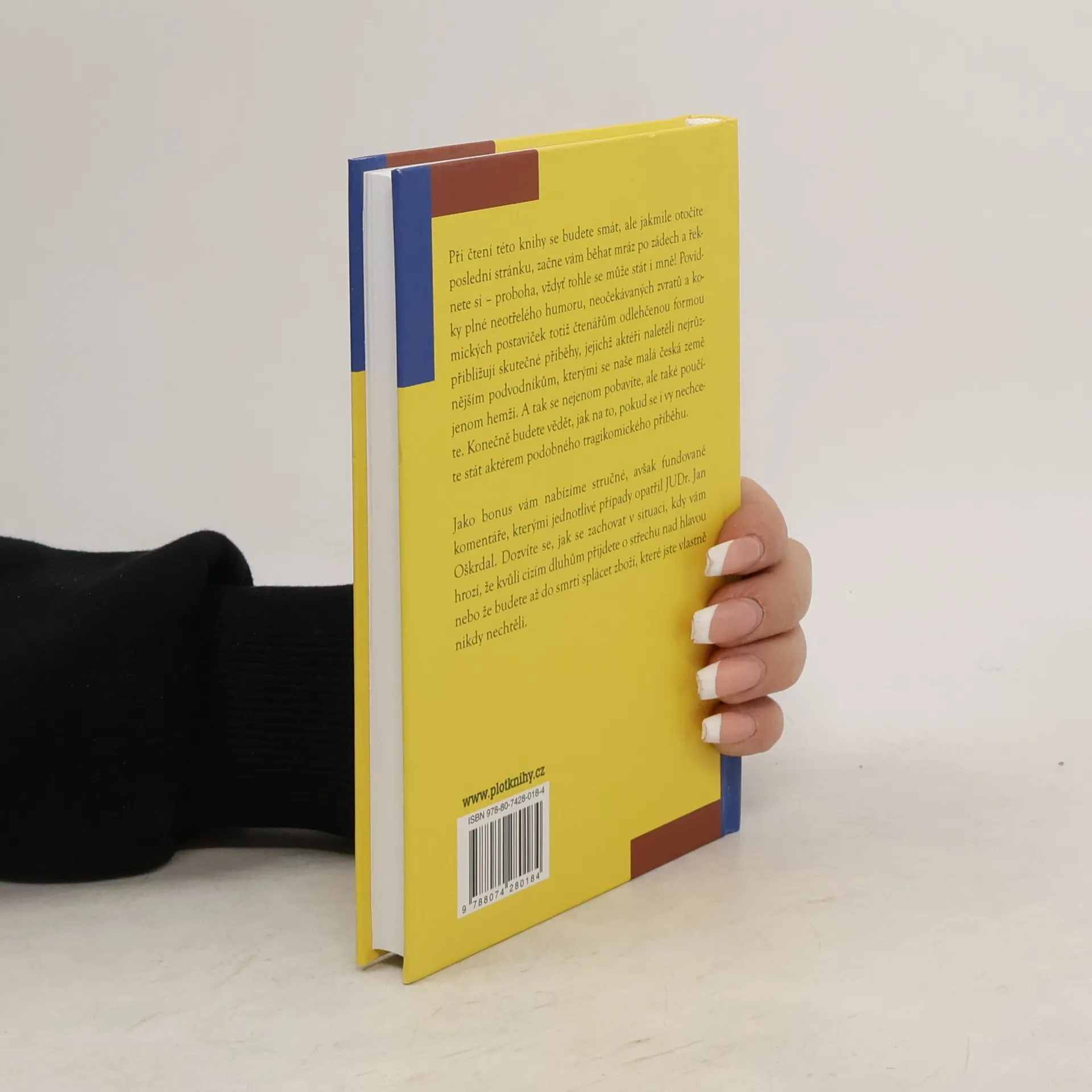 Při čtení této knihy se budete smát, ale jakmile otočíte poslední stránku, začne vám běhat mráz po zádech a řeknete si - proboha, vždyť tohle se může stát i mně! Povídky plné neotřelého humoru, neočekávaných zvratů a komických postaviček totiž čtenářům odlehčenou formou přibližují skutečné příběhy, jejichž aktéři naletěli nejrůznějším podvodníkům, kterými se naše malá česká země jenom hemží. A tak se nejenom pobavíte, ale také poučíte. Konečně budete vědět jak na to, pokud se i vy nechcete stát aktérem podobného tragikomického příběhu. Jako bonus vám nabízíme stručné, avšak fundované komentáře, kterými jednotlivé případy opatřil JUDr. Jan Oškrdal. Dozvíte se, jak se zachovat v situaci, kdy kvůli cizím dluhům můžete přijít o střechu nad hlavou nebo do smrti splácet zboží, které jste vlastně nikdy nechtěli.