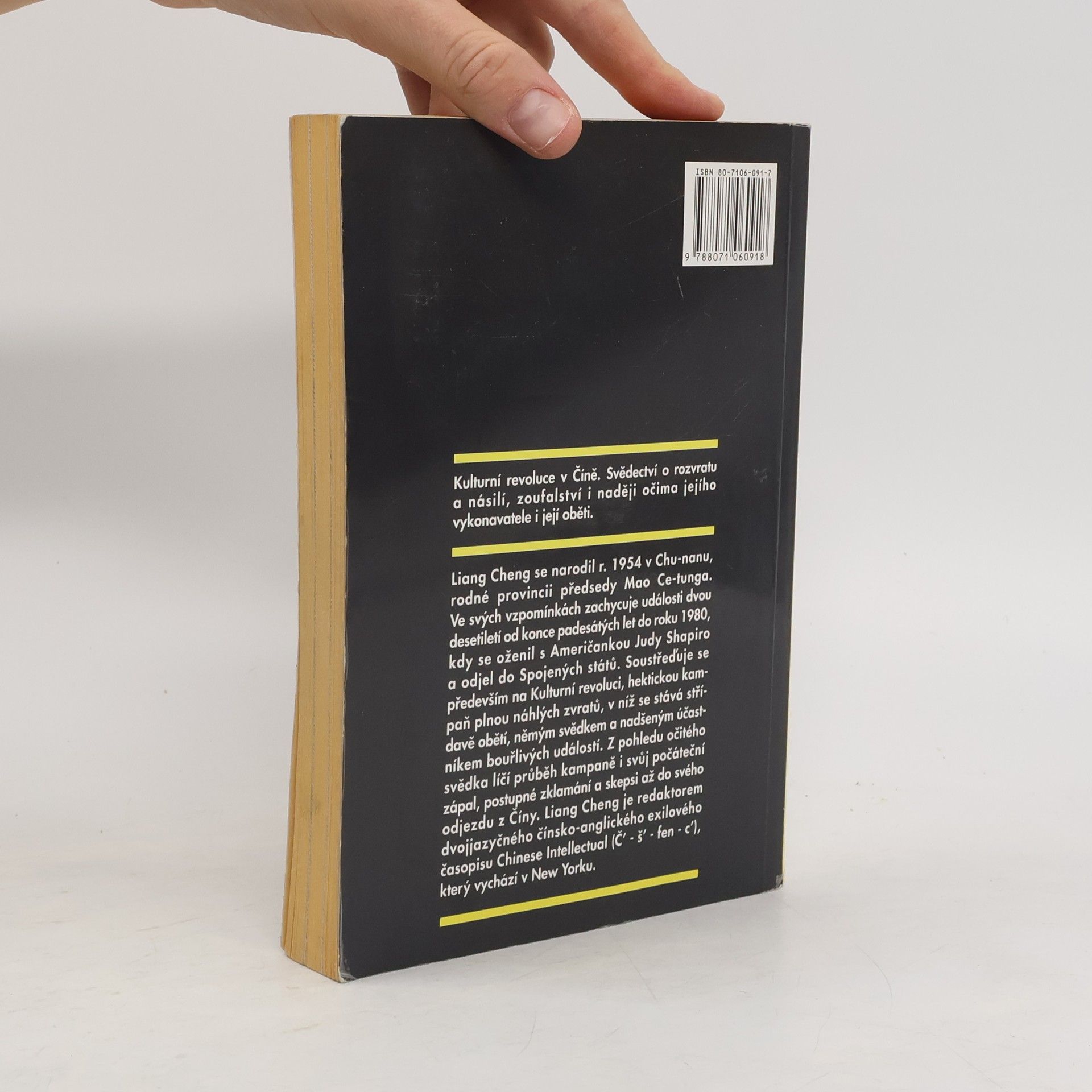 Kulturní revoluce v Číně. Svědectví o rozvratu a násilí, zoufalství i naději očima jejího vykonavatele i její oběti. Liang Cheng se narodil roku 1954 v Chu-nanu, rodné provincii předsedy Mao Ce-tunga. Ve svých vzpomínkách zachycuje události dvou desetiletí od konce padesátých let do roku 1980, kdy se oženil s američankou Judy Shapiro a odjel do Spojených států. Soustřeďuje se především na Kulturní revoluci, hektickou kampaň plnou náhlých zvratů, v níž se stává střídavě obětí, němým svědkem a nadšeným účastníkem bouřlivých událostí. Z pohledu očitého svědka líčí průběh kampaně i svůj počáteční zápal, postupné zklamání a skepsi až do svého odjezdu z Číny.