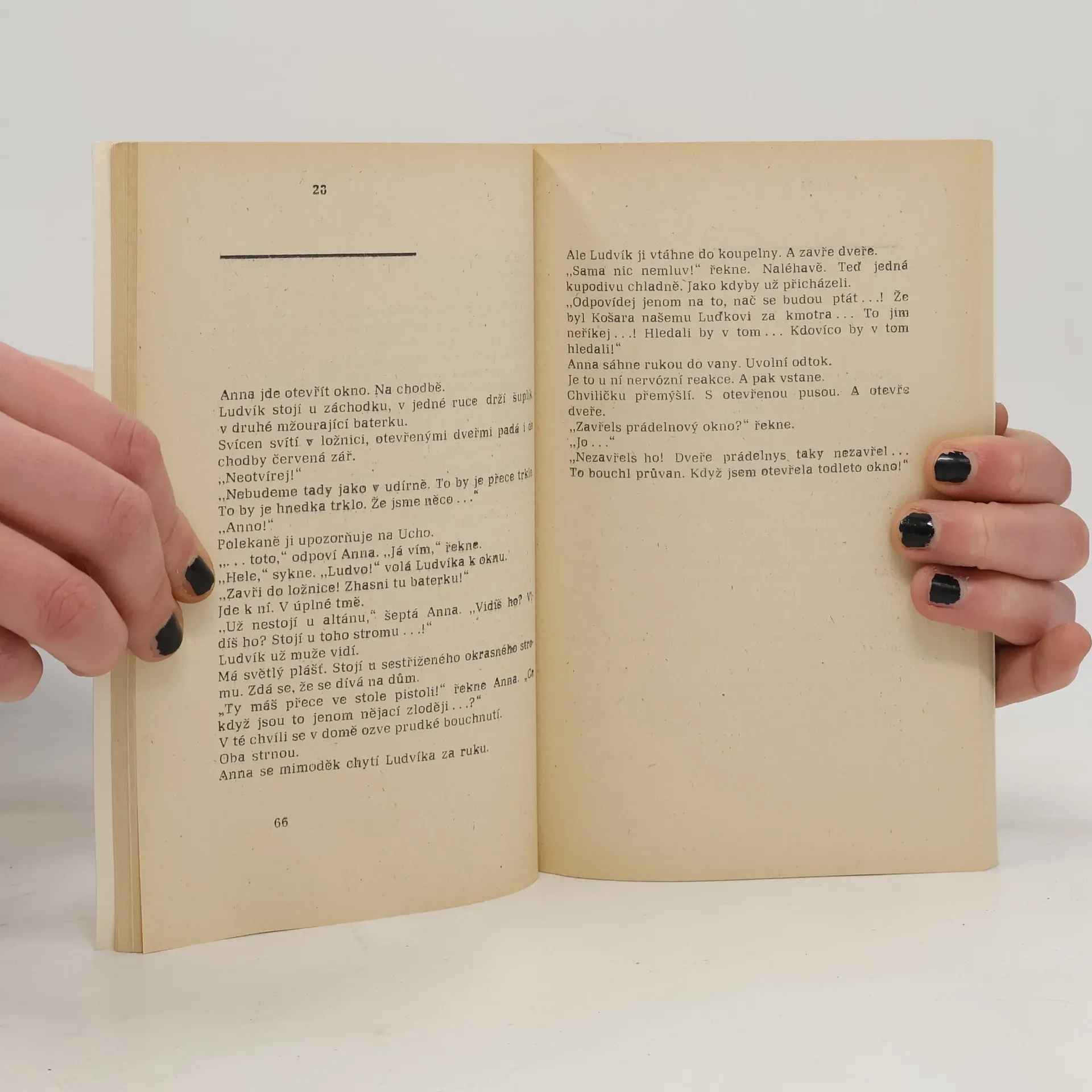 Povídka odehrávající se v průběhu jediné noci v padesátých letech, jejímiž jedinými protagonisty jsou náměstek ministra a jeho žena. Po návratu z vládní recepce se dozvídají o rozsáhlém zatýkaní ve svém nejbližším okolí. Noc plná výčitek, obav a obviňování, dostává obrat v okamžiku, kdy manželé naleznou v bytě odposlech. Zapomínají na své milenecké nesváry a očekávají nevyhnutelné zatčení. Předloha filmu K. Kachyni se stejným názvem.