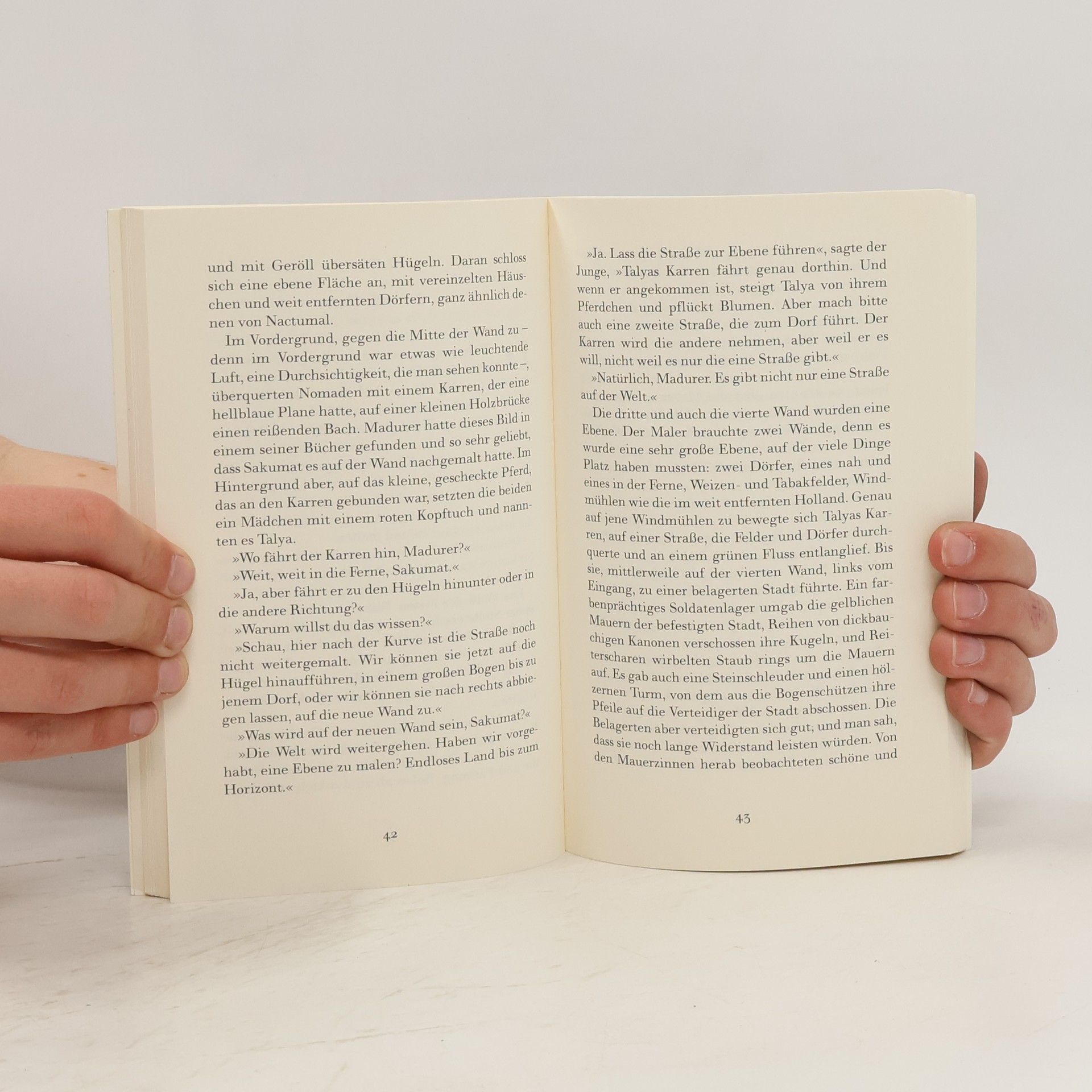 »Ich habe einen einzigen Sohn, der noch sehr jung ist und Madurer heißt. Er leidet an einer seltenen Krankheit und kann nicht im Freien sein. Nun habe ich überlegt, die Zimmer meines Sohnes mit Bildern und Farben auszuschmücken. Deshalb habe ich dich holen lassen. Du wirst über meine Gastfreundschaft und die Belohnung nicht klagen müssen. Ich bitte dich, sag Ja.«
