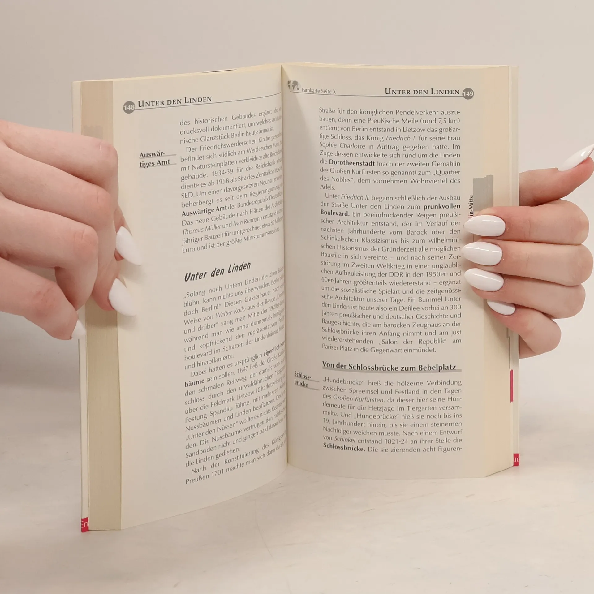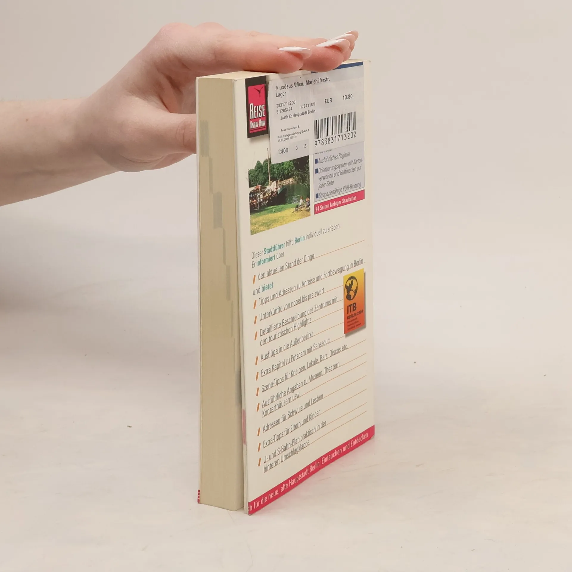Der aktuelle City Guide durch die unbeständigste Metropole Europas. •Alle praktischen Tipps für einen erfolgreichen Citytrip von Informationsstellen bis Notfälle für Mensch und Auto •Unterkünfte für die Nacht von Hotels über Jugendherbergen bis zum Zeltplatz •Essen und Trinken für jeden Geschmack von arabisch über gutbürgerlich und Nouvelle Cuisine bis russisch •Shopping von Luxus über Schrill bis Trödel •Nightlife: die angesagten Adressen von Bars, Clubs, Diskotheken und Tanzcafés •Kultur und Kunst in ihrer vollen Breite von Museen und Galerien bis zu aktuellen Events •Auf Touren in Stadtmitte und den angrenzenden Bezirken Sehens- und Erlebenswertes entdecken •Ausflüge nach Potsdam, Spandau, Köpenick und Wannsee •Wissens- und Plaudernswertes über Berliner Geschichte und Gegenwart, über Berliner und Zugezogene, Großstadtleben und Kiezkultur •Exakte Fakten, aktuelle Adressen, genaue Preise, stimmige Wertungen Pressestimmen: Geo Spezial Nov. 2002, S. 171 „Der handliche Führer bietet Berlin-Tipps für jede Generation und Interessenlage plus einen Abstecher nach Postdam. Praktisch: der farbige Kartenatlas am Schluss.“ (Erwähnung an 1. Stelle, noch vor DuMont) ekz-Informationsdienst, 11/03: „Ein Buch zur schnellen und knappen Orientierung, das sich aufs Wesentliche konzentriert.“