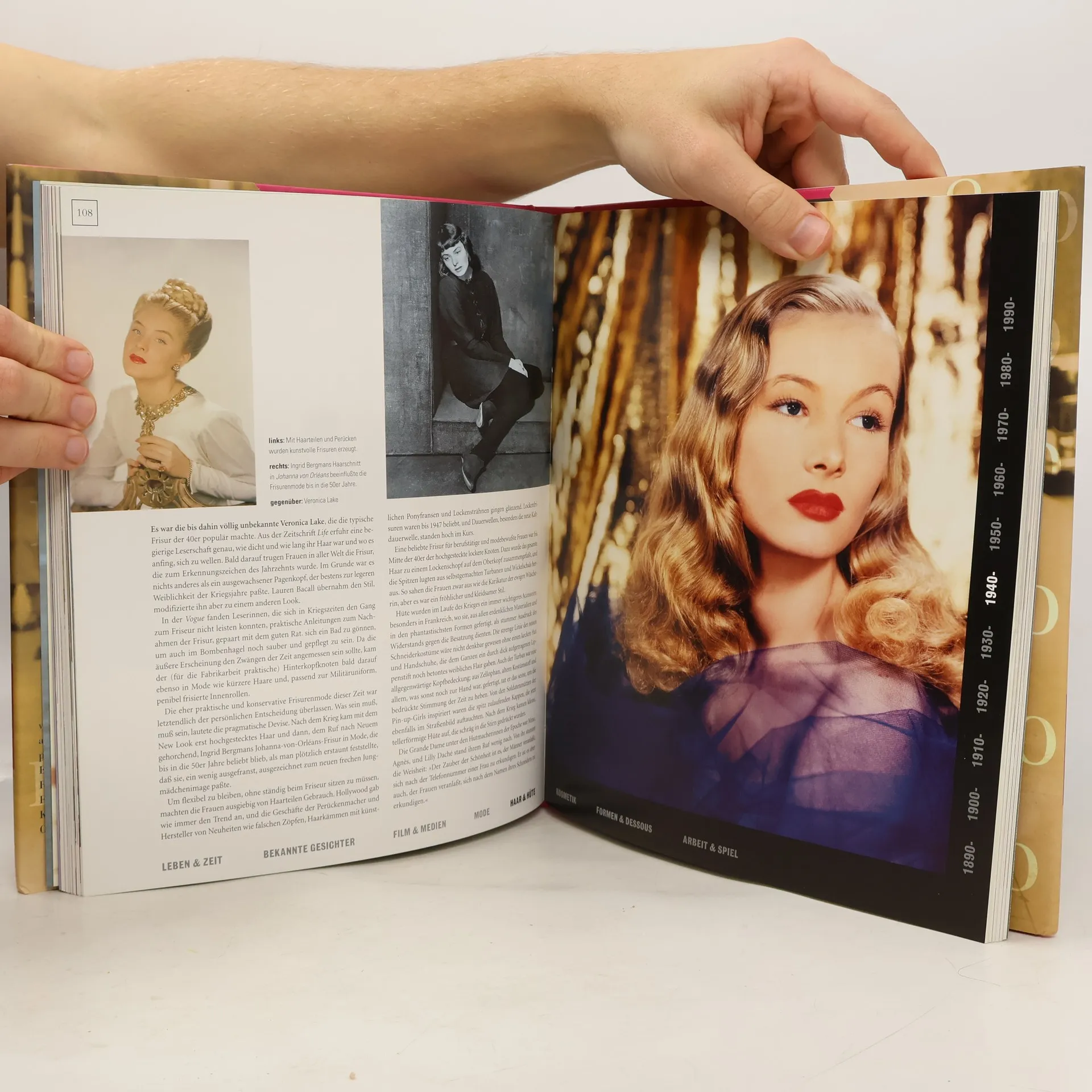 Der Bildband dokumentiert die Geschichte von Kleidung, Frisuren und Make-up in Europa und USA im 20. Jahrhundert vom Fischbeinkorsett bis zum Bikini. Unterteilt nach Jahrzehnten werden Zeitereignisse, Idole von Film und Fernsehen, internationaler Sport, die Emanzipation und die Bedingungen von Frauenalltag, -beruf und -arbeit in Kriegs- und Friedenszeiten herangezogen, um Vorherrschaft und Wandel des weiblichen Schönheitsideals in den einzelnen Dekaden darzustellen. Blickfang, der die leicht zugänglichen, sehr lesenswerten Texte unverdient in den Hintergrund verweist, sind die vielen großformatigen Fotos aus Presse und Werbung mit aussagekräftigen Bildlegenden. Der angesichts der gebotenen Qualität relativ preisgünstige Band hält sowohl für jüngere wie für ältere Leserinnen viele Entdecker- bzw. Erinnerungsfreuden bereit. (2) (Irmgard Andrae)