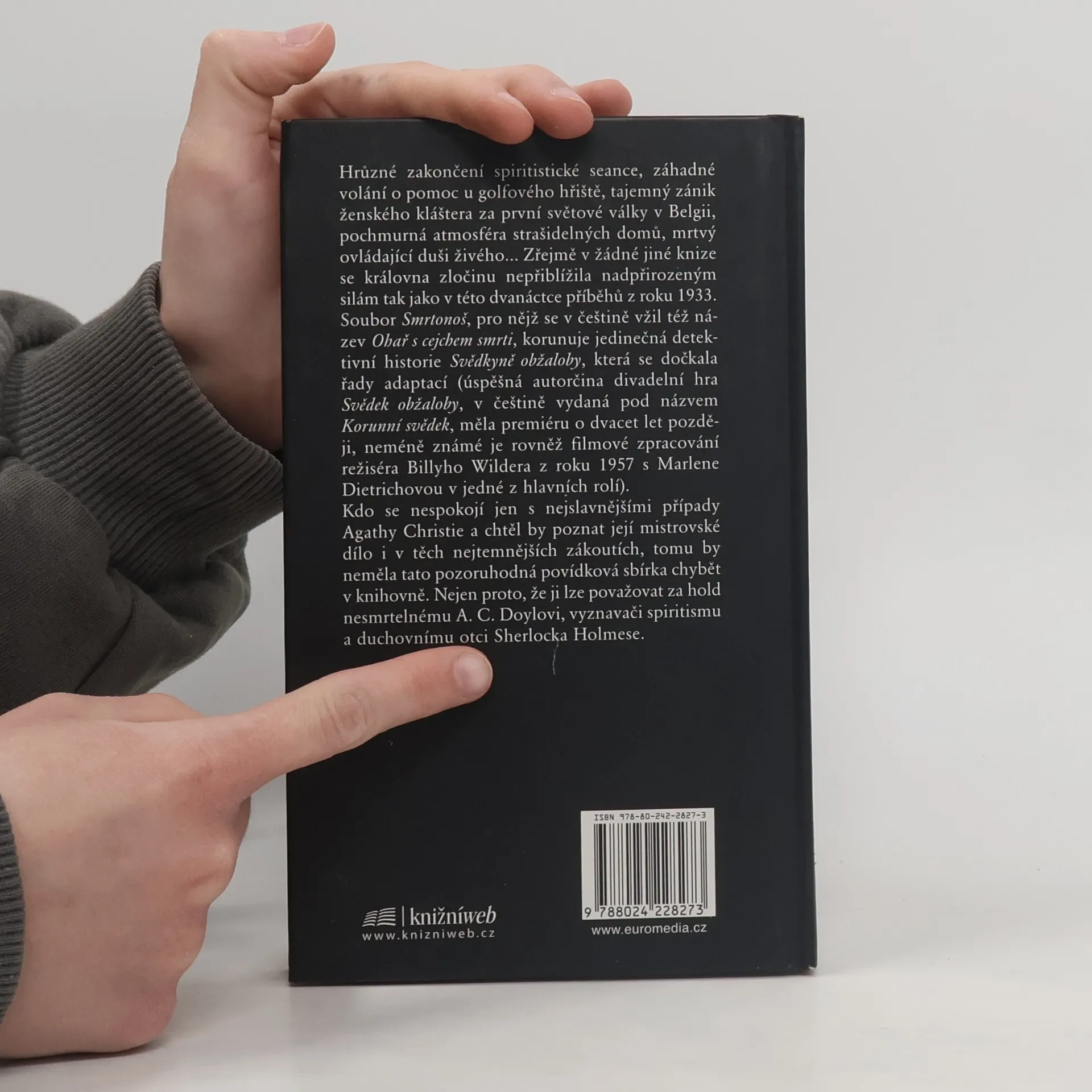 Hrůzné zakončení spiritistické seance, záhadné volání o pomoc u golfového hřiště, tajemný zánik ženského kláštera za první světové války v Belgii, pochmurná atmosféra strašidelných domů, mrtvý ovládající duši živého… Zřejmě v žádné jiné knize se královna zločinu nepřiblížila nadpřirozeným silám tak jako v této dvanáctce příběhů z roku 1933. Soubor Smrtonoš, pro nějž se v češtině vžil též název Ohař s cejchem smrti, korunuje jedinečná detektivní historie Svědkyně obžaloby, která se dočkala řady adaptací (úspěšná autorčina divadelní hra Svědek obžaloby, v češtině vydaná pod názvem Korunní svědek, měla premiéru o dvacet let později, neméně známé je rovněž filmové zpracování režiséra Billyho Wildera z roku 1957 s Marlene Dietrichovou v jedné z hlavních rolí). Kdo se nespokojí jen s nejslavnějšími případy Agathy Christie a chtěl by poznat její mistrovské dílo i v těch nejtemnějších zákoutích, tomu by neměla tato pozoruhodná povídková sbírka chybět v knihovně. Nejen proto, že ji lze považovat za hold nesmrtelnému A. C. Doylovi, vyznavači spiritismu a duchovnímu otci Sherlocka Holmese.