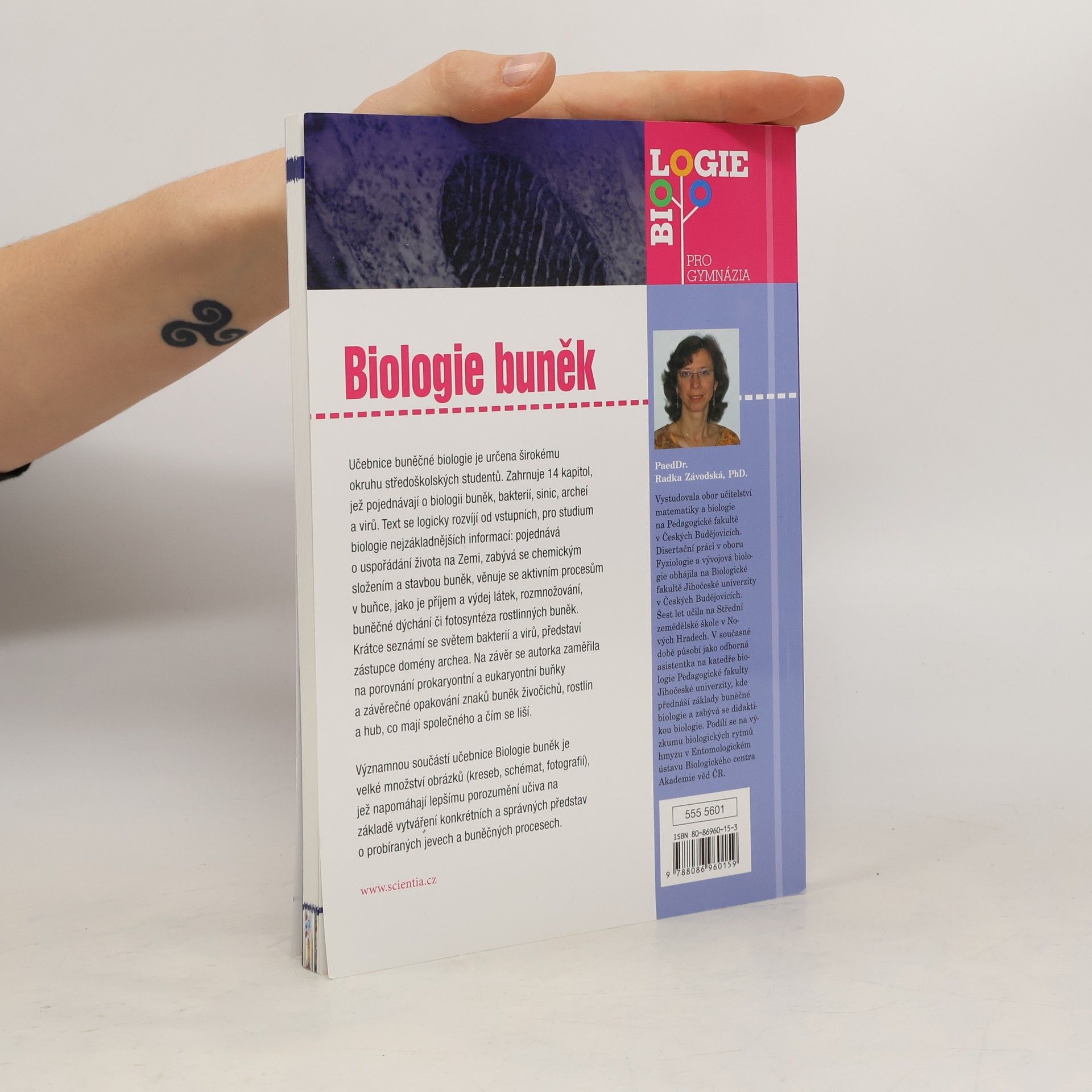 Učebnice buněčné biologie je určena širokému okruhu středoškolských studentů. Zahrnuje 14 kapitol s problematikou biologie buněk, bakterií, sinic, archeí a virů. Titul je doporučeným studijním podkladem pro přípravu ke SCIO testům! První kapitola pojednává o uspořádání života na Zemi, kapitoly 2–5 se zabývají chemickým složením a stavbou buněk. Následující kapitoly jsou věnovány procesům, jako je příjem a výdej látek buňkou (kapitola 6), rozmnožování buněk (kapitola 7), buněčné dýchání (kapitola 8) a fotosyntéza rostlinných buněk (kapitola 9). V 10. a 11. kapitole se seznámíte se světem bakterií a sinic, kapitola 12 krátce pojednává o zástupcích domény archea, kapitola 13 je věnována virům a virovým infekcím. Poslední kapitola je zaměřena na porovnání prokaryontní a eukaryontní buňky a závěrečné zopakování znaků buněk živočichů, rostlin a hub, co mají společného a čím se liší. Struktura textu je obdobná jako v Genetice. Významnou součástí učebnice Biologie buněk je velké množství obrázků (kreseb, schémat, fotografií), jež napomáhají k lepšímu porozumění učiva na základě vytváření konkrétních a správných představ o probíraných jevech a buněčných procesech.
