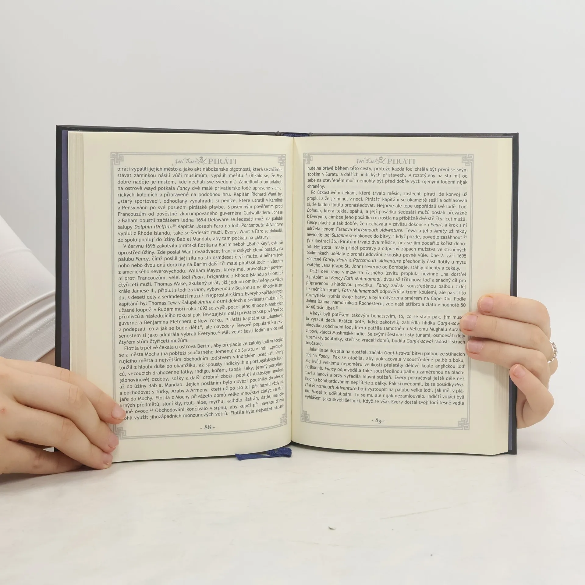 Stačí jediné zvolání a dech se tají, a to klukům od devíti až do devadesáti. A už jsou zase tady. Přirážejí ke břehu, šavle řinčí a míhají se barevné šátky. A nade vším slavná pirátská vlajka s lebkou a zkříženými hnáty. A defilují všichni, od Černovouse přes Henry Morgana a Williama Dampiera až po piráta pirátů, Černého Bartoše. Tentokrát se před námi otevírá pravdivá historie zlatého věku pirátství i s jeho koncem. Kniha vypráví o slavných dobách očima sedmi britských námořních lupičů, podrobně líčí jejich život, zločiny i kořist a také to, jak Admiralita prosazovala v Parlamentu zákony, které slavné piráty nakonec přemohly.