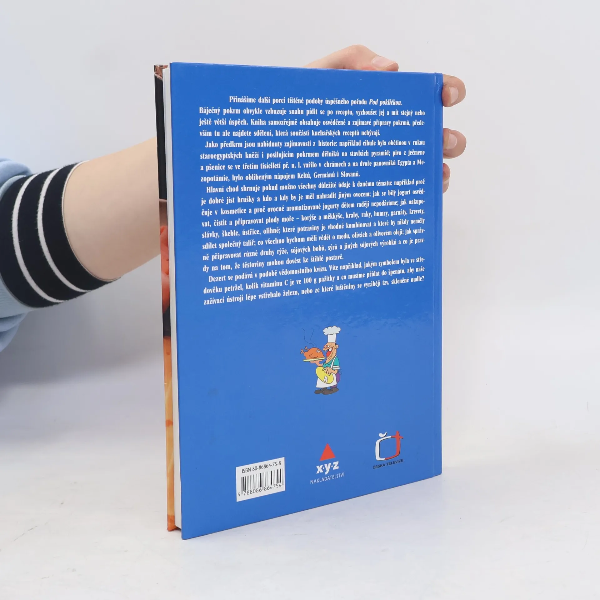 Báječný pokrm v nás většinou vzbudí snahu pídit se po receptu, vyzkoušet jej a mít stejný nebo ještě větší úspěch, proto i tato kniha obsahuje zajímavé a neobvyklé přípravy pokrmů. Především tu však najdete sdělení, která byste marně hledali v běžných souborech receptů nebo na obvyklých jídelních lístcích. V lístku zde předloženém můžete listovat jako v knihovně bohatě vybavené encyklopedickou literaturou, zodpovědět si nejrůznější otázky. Jako předkrm jsou nabízeny zajímavosti z historie, hlavní chod shrnuje důležité údaje k danému tématu, dezert se podává v podobě vědomostního kvízu. Nejsou opomenuty nápoje, které potěší, například pivo nebo víno. Dostanete odpověď na otázku, jak mohou pomoci jablka při nachlazení, alergiích, vysokém tlaku, artritidě. Luštěniny opravdu nejen přispívají k dobré náladě, ale dovedou chránit před zhoubným růstem buněk. A proč vlastně naše tělo miluje med? Čím vším jsou nám prospěšné olivy? Jaké jsou nejvhodnější doplňky rýžových pokrmů?... Jídelníček je seřazen abecedně, zaznamenává současnost i minulost, často pozoruhodnou. Víte, že cibule se pěstovala před pěti tisíci lety v Mezopotámii, hrušky znali už Etruskové, za svou dlouhověkost prý starozákonní Abrahám vděčil jogurtu, nebo že první zchlazené nápoje se zřejmě objevily na hostinách římského císaře Nra, který pro led k jejich přípravě vysílal do hor své otroky?