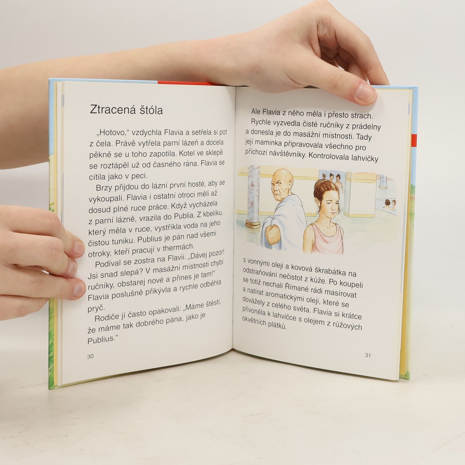 Kniha v pěti velmi zajímavých příbězích přibližuje čtenáři život ve starém Římě. pověstné římské lázně jsou dějištěm záhady ztracené štoly. Malá otrokyně Flavia je křivě obviněna. jestlipak se vše v dobré obrátí? Stejně jako v příběhu o malé Livii, která díky své kamarádce včas doručí zboží senátorovi ? Čtenáře jistě zaujme i pohled do Kolosea a setkání s gladiátory.