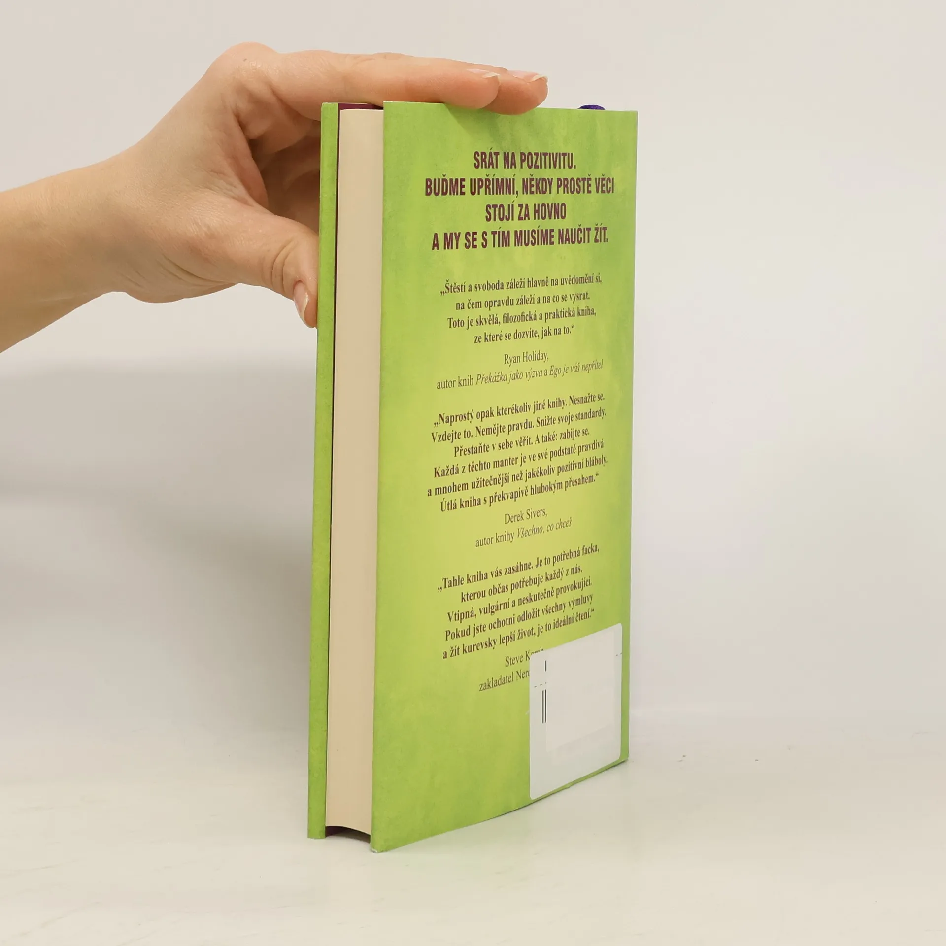 Pozitivní nálada za každé situace? To je tak trochu utopie, ne? Kdo z nás by se dokázal neustále hihňat a pousmívat třeba ve chvíli, kdy se mu hroutí život, v práci na něj křičí šéf a doma partner/ka? Jedině neoblomný hipísák nebo ten, kdo si sem tam zobne nějakou tu zákonem neakceptovanou pilulku. K čertu s pozitivismem. Buďme upřímní, když něco stojí za hovno, tak si to přiznejme a naučme se s tím žít. Důmyslné umění, jak mít všechno u prdele vám ukáže trochu jiný pohled na svět. Autor Mark Manson se ve svém díle opírá o reálný vědecký výzkum. Ten tvrdí, že šťastnější život nespočívá ve schopnosti proměnit hromadu citrónů ve sladkou limonádu, ale naučit se s tou kyselou příchutí na jazyku zkrátka žít. Každý z nás dělá chyby a setkává se s nepřízní osudu. Není důležité předstírat, že se to nestalo, ale soustředit se na to, co je opravdu důležité. Na zbytek se zkrátka vykašlete.