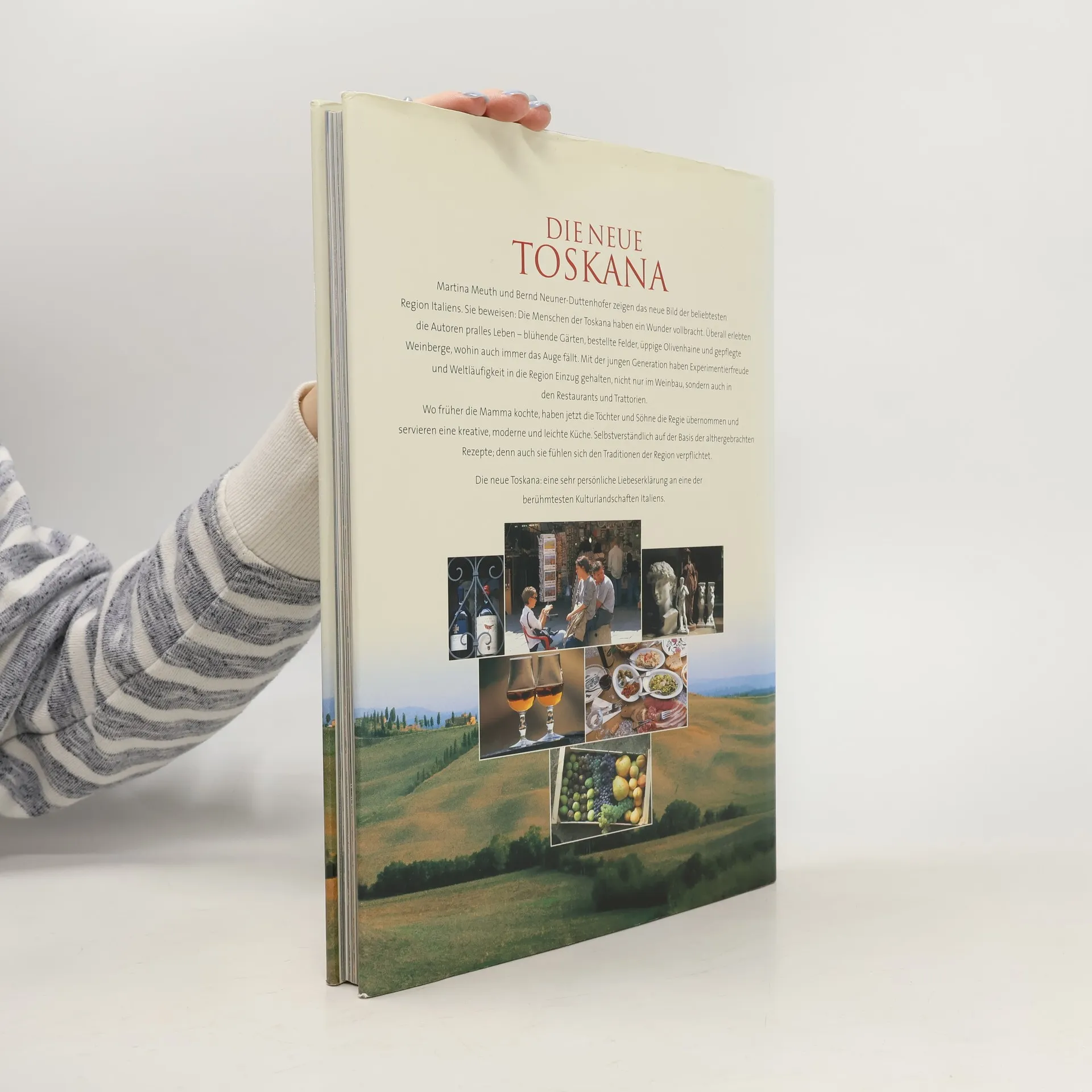 Das berühmteste Autorenpaar kulinarischer Bildbände steht für eine unvergleichliche Erfolgsgeschichte im deutschen Buchhandel. Seit über zehn Jahren sind die »Kulinarischen Landschaften« von Martina Meuth und Bernd Neuner-Duttenhofer die bestverkauften Backlisttitel ihres Genres. Die Erfolgsautoren erzählen von Küche, Land und Leuten und beschwören die Farben, Düfte und Geräusche einer Landschaft. Sie stehen für Authentizität, Lebendigkeit und Ursprüngliches. Meuth/Neuner-Duttenhofer ist das Gütesiegel für Regionalküche mit Gelinggarantie beim Nachkochen zu Hause. In ihrem neuesten Werk laden die Autoren zu einer Entdeckungsreise in die Toskana ein. Jede Seite belegt: Die Toskana, beliebteste Reiseregion Italiens, lebt und bietet Überraschungen. Sie ist geprägt von sanft schwingenden Hügeln, hohen Zypressen und silbernen Olivenbäumen. Hier diskutiert man auf dem Markt lautstark über die Tomaten für jedes Pastagericht. Die klassische Toskana, wo die Mamma in traditionsreichen Familienbetrieben den Ton angibt, bleibt lebendig. Gleichzeitig bereichert eine junge Generation von Gastronomen und Weinmachern die Region, kreativ und experimentierfreudig im Umgang mit der wertvollen Tradition. Ihnen ist das neue Buch von Martina Meuth und Bernd Neuner-Duttenhofer gewidmet.