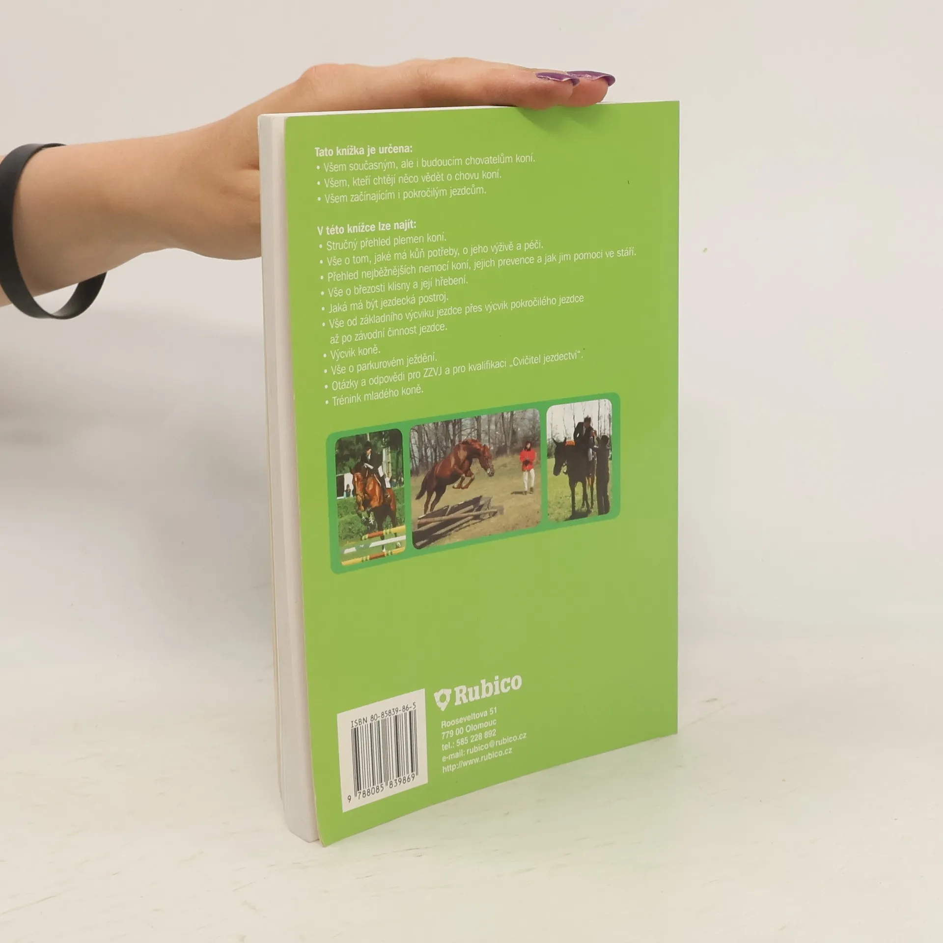 Kniha je určena pro všechny začínající i pokročilé chovatele koní a milovníky jezdeckého sportu. Přináší informace o plemenech koní, výživě, péči a nemocech, březosti klisny a hřebení, jezdecké postroji, výcviku atd.