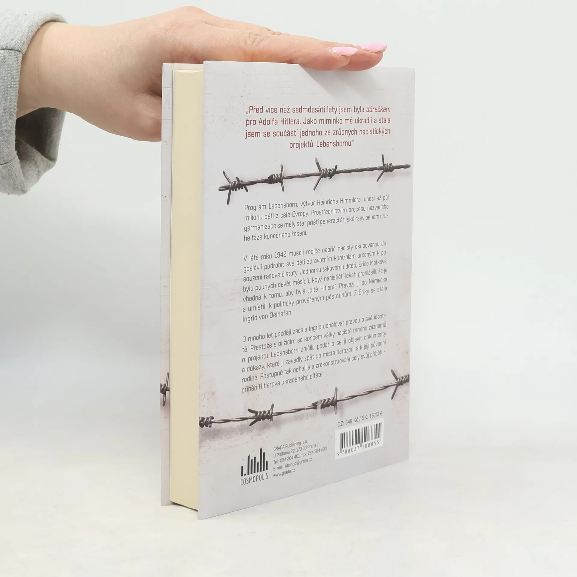 „Před více než 70 lety jsem byla dárečkem pro Adolfa Hitlera. Jako miminko mě ukradli a stala jsem se součástí jednoho ze zrůdných nacistických projektů: Lebensbornu.“ Program Lebensborn, výtvor Heinricha Himmlera, unesl až půl milionu dětí z celé Evropy. Prostřednictvím procesu nazvaného germanizace se měly stát příští generací árijské rasy během druhé fáze konečného řešení. V létě roku 1942 museli rodiče napříč nacisty okupovanou Jugoslávií podrobit své děti zdravotním kontrolám určeným k posouzení rasové čistoty. Jednomu takovému dítěti, Erice Matkové, bylo pouhých 9 měsíců, když nacističtí lékaři prohlásili, že je vhodná k tomu, aby byla „dítě Hitlera“. Převezli ji do Německa a umístili k politicky prověřeným pěstounům. Z Eriky se stala Ingrid von Oelhafen. O mnoho let později začala Ingrid odhalovat pravdu o své identitě. Přestože s blížícím se koncem války nacisté mnoho záznamů o projektu Lebensborn zničili, podařilo se jí objevit dokumenty a důkazy, které ji zavedly zpět do místa narození a k její původní rodině. Postupně tak odhalila a zrekonstruovala celý svůj příběh – příběh Hitlerova ukradeného dítěte.