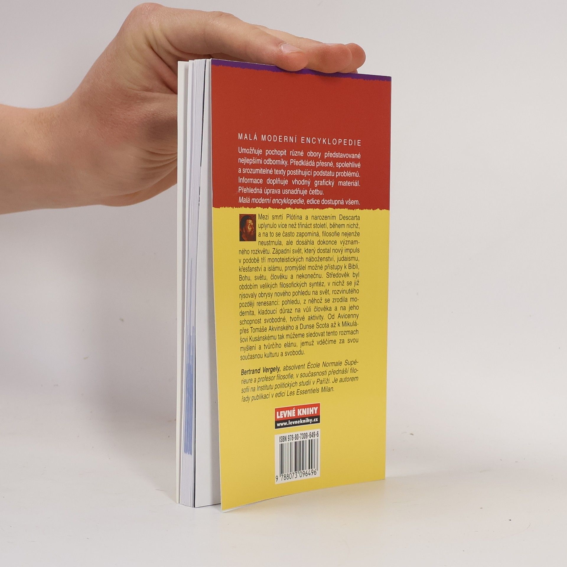 Mezi smrtí Plótína a narozením Descarta uplynulo více než třináct století, během nichž, a na to se často zapomíná, filosofie nejenže neustrnula, ale dosáhla dokonce významného rozkvětu. Západní svět, který dostal nový impuls v podobě tří monoteistických náboženství, judaismu, křesťanství a islámu, promýšlel možné přístupy k Bibli, Bohu, světu, člověku a nekonečnu. Středověk byl obdobím velikých filosofických syntéz, v nichž se již rýsovaly obrysy nového pohledu na svět, rozvinutého později renesancí: pohledu, z něhož se zrodila modernita, kladoucí důraz na vůli člověka a na jeho schopnost svobodné, tvořivé aktivity. Od Avicenny přes Tomáše Akvinského a Dunse Scota až k Mikulášovi Kusánskému tak můžeme sledovat tento rozmach myšlení a tvůrčího elánu, jemuž vděčíme za svou současnou kulturu a svobodu.