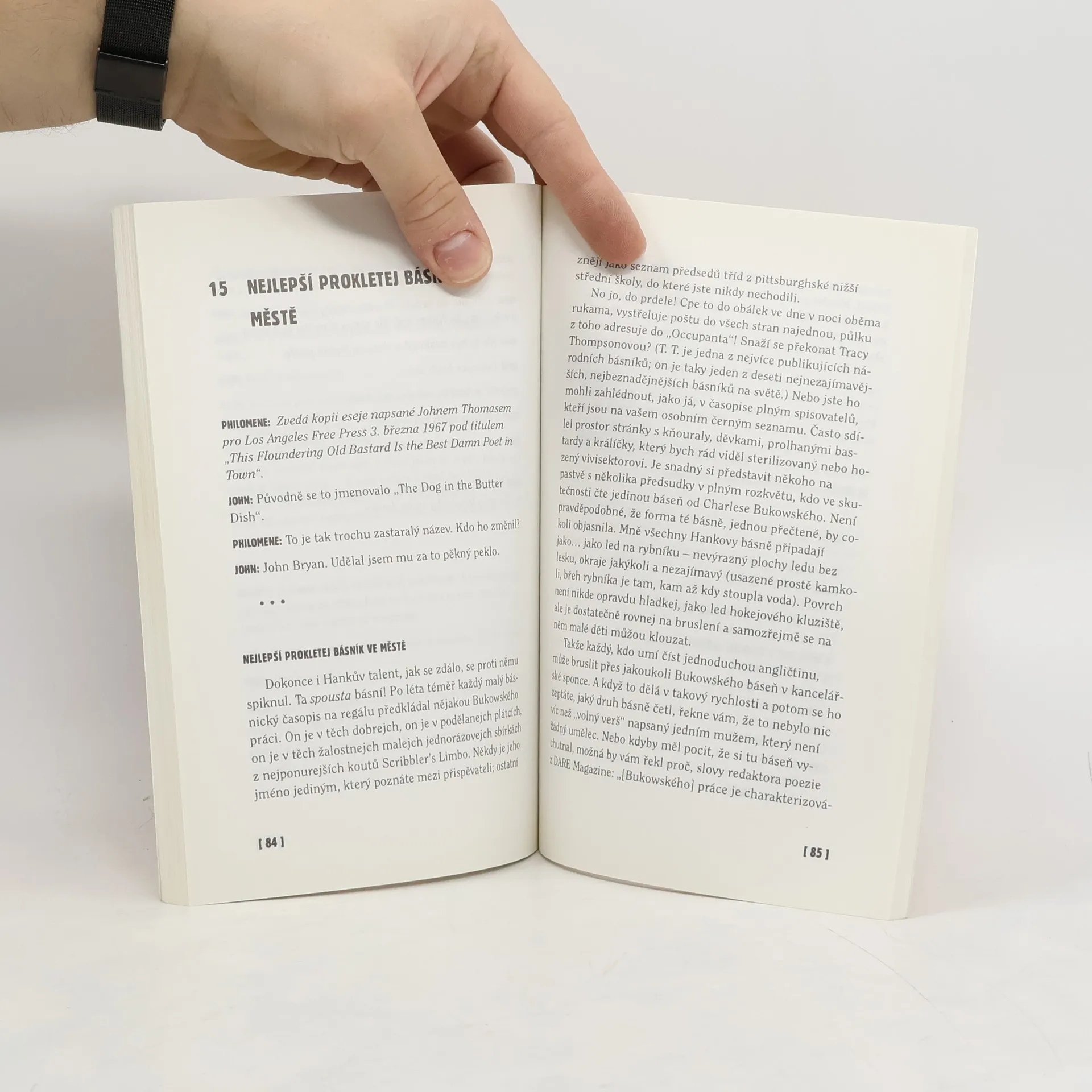 Rozhovor Philomene Longové s Johnem Thomasem, který byl po určitý čas intimním přítelem Charlese Bukowského (1965–1971). Tato útlá, leč velmi výstižná kniha čerpá z jejich vzájemných návštěv a rozhovorů, jednotlivých postřehů, nálad a životních postojů. Je ovšem nejen výpovědí o jedné výjimečné partnerské dvojici, ale i svědectvím o době, která je i dnes v popředí zájmu široké veřejnosti.