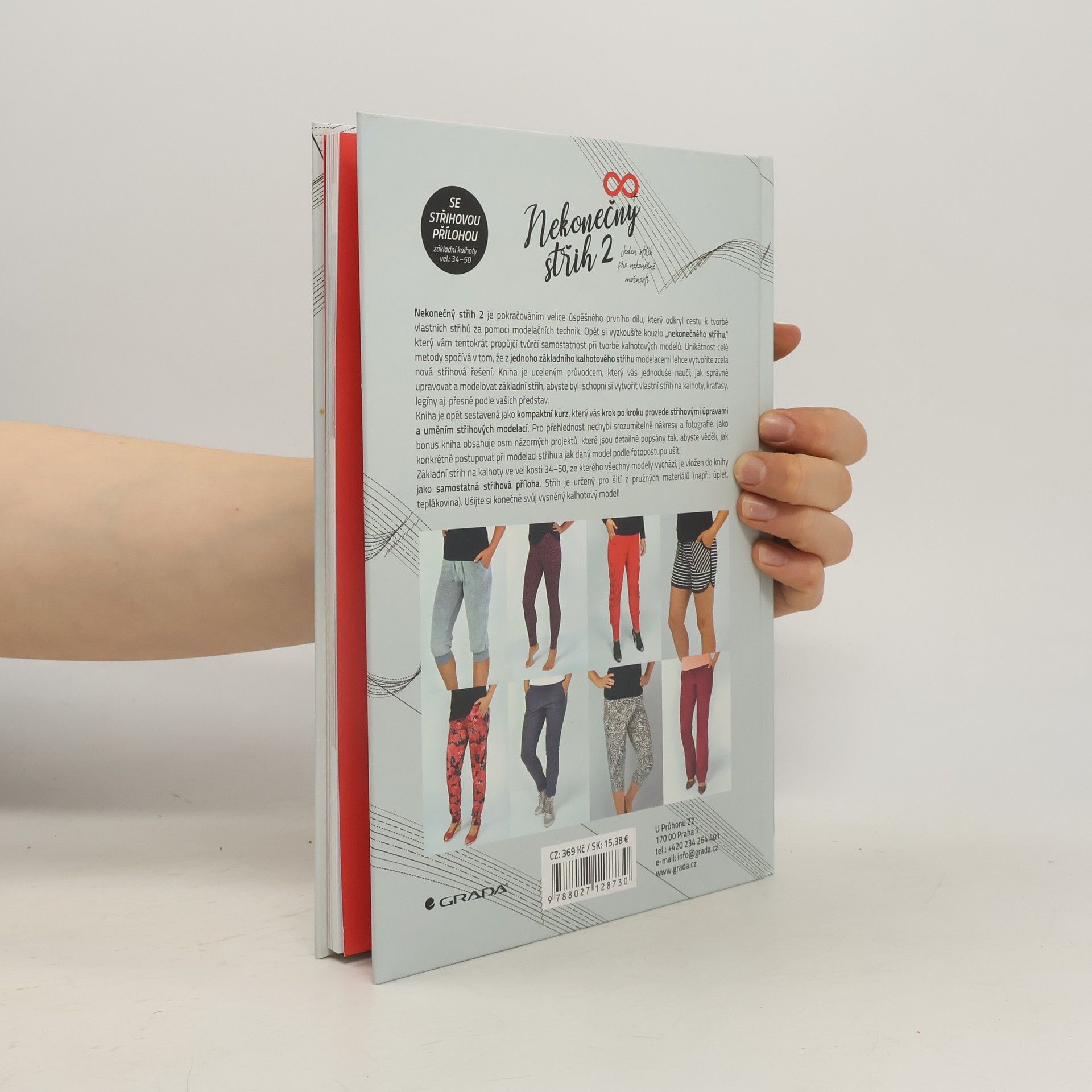Nekonečný střih 2 je pokračováním úspěšného prvního dílu, který odkrývá tajemství střihových modelací. Tento díl je zaměřený na problematiku kalhotových modelů. Dozvíte se spoustu cenných rad a tipů na úpravu kalhot a opět si ukážeme, jak pomocí jednoho základního střihu lze vytvořit nekonečně mnoho dalších modelů. Díky vložené střihové příloze se základním střihem (vel. 34–50) jsou skvěle padnoucí kalhoty či kraťasy, a s malou úpravou i legíny, konečně na dosah.