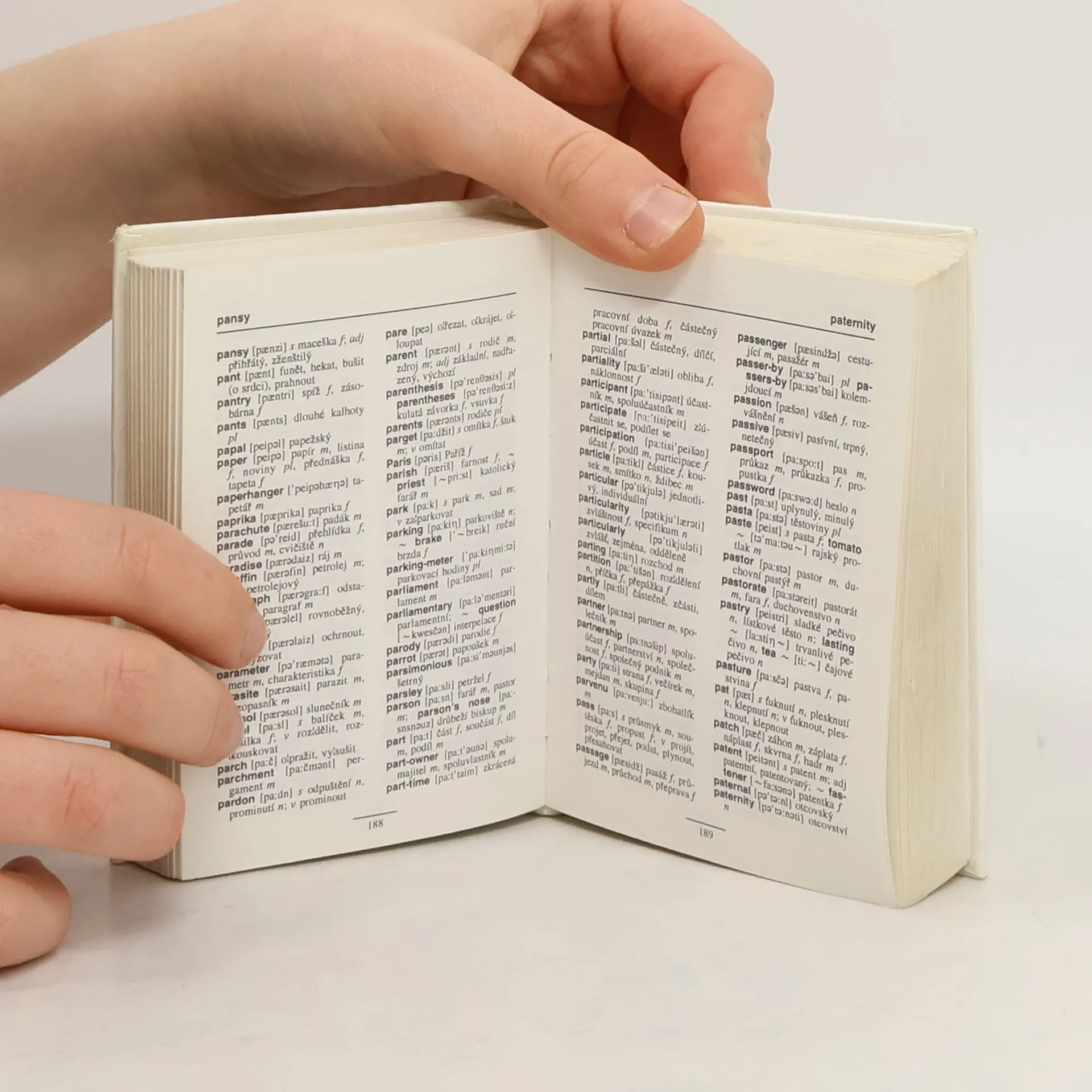 Kapesní anglicko-český a česko-anglický slovník se stručnou gramatikou v pevné vazbě.