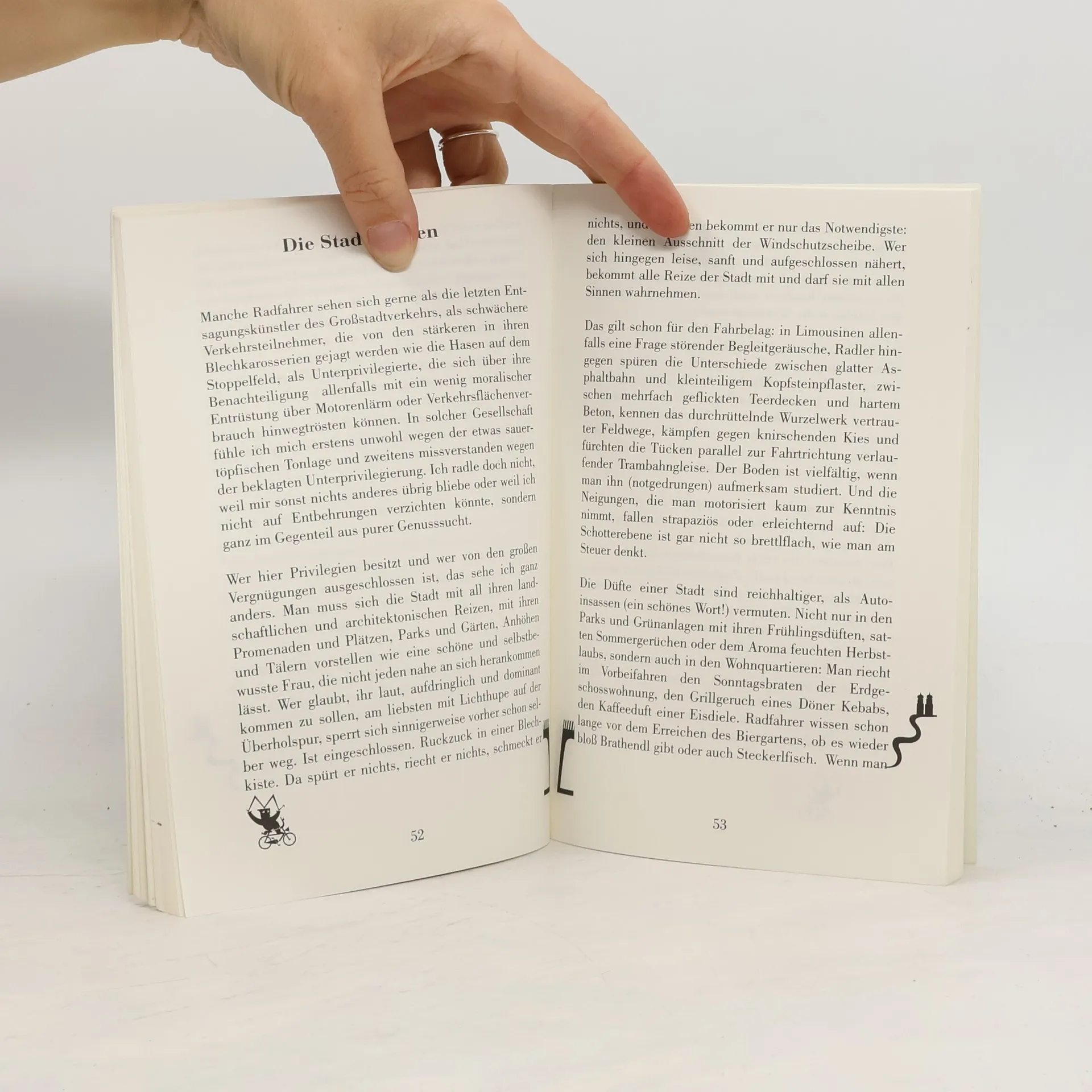 "Stadtradeln" ist das Buch schlechthin für Radfahrer in der Stadt, Freizeitstrampler und Fahrradenthusiasten gleichermaßen, aber auch für leidenschaftliche Autofahrer, die schon immer wissen wollten, warum sich ehrenwerte Zeitgenossen freiwillig in der Stadt auf ein Fahrrad setzen - und auch noch so anarchisch beglückt scheinen. Wenn doch einer so ein Buch auch über Berlin schriebe, so liebenswürdig, so schrullig und so beglückend. "Berliner Morgenpost" Radfahren kann - symbolisch gesprochen - katzbuckeln nach oben und treten nach unten bedeuten, Radfahren kann eine eiserne Sportdisziplin sein oder auch - als Mountainbiking - eine Fun- und Trendsportart. Mit all dem hat Christian Ude nichts im Sinn. Stadtradeln ist etwas vollkommen Anderes: Radfahren aus purer Genusssucht, urbaner Bewegungsfreude; Herumstöbern in der Stadt, nicht nur auf ihren Touristenpfaden und Hauptverkehrsstraßen, die jeder kennt, sondern anarchistisch kreuz und quer durch entlegene Quartiere, Grünanlagen und Hinterhöfe, stets mit freier Sicht auf Jugendstil- und Gründerzeitfassaden, die Autofahrer nur vom Hörensagen oder aus Bildbänden kennen. Stadtradeln, das heißt auch, eine Stadt mit allen Sinnen zu spüren und zu erforschen.