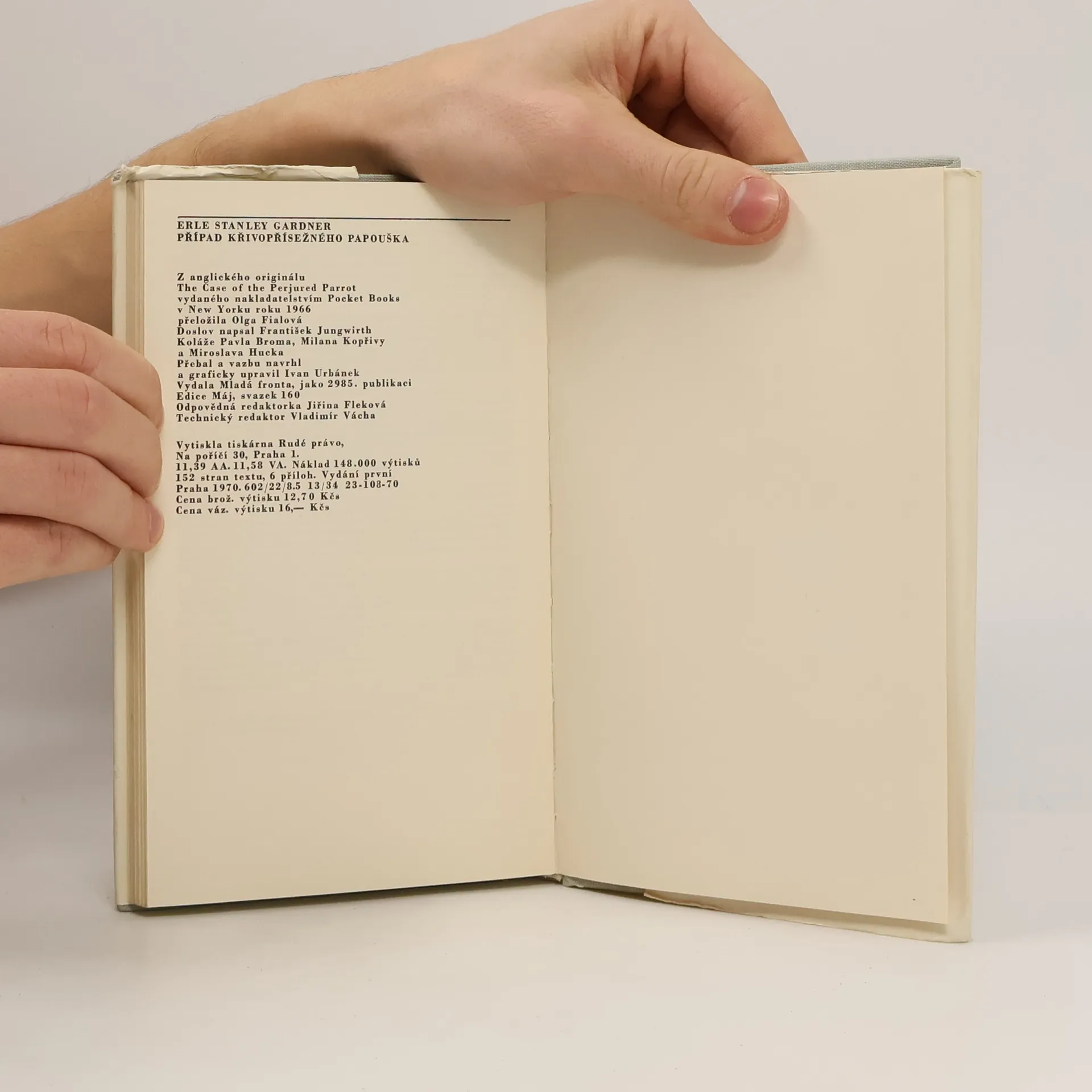 Dějově komplikovaný detektivní příběh, jehož objasnění je ztíženo falešným svědectvím mluvícího papouška. Situaci, v níž se ocitla mladá žena obviněná z vraždy svého manžela, řeší po právní i logické stránce slavný advokát Perry Mason se svými spolupracovníky a jako vždy itentokrát jeho brilantní dedukce vede k odhalení skutečného pachatele. 23-108-70