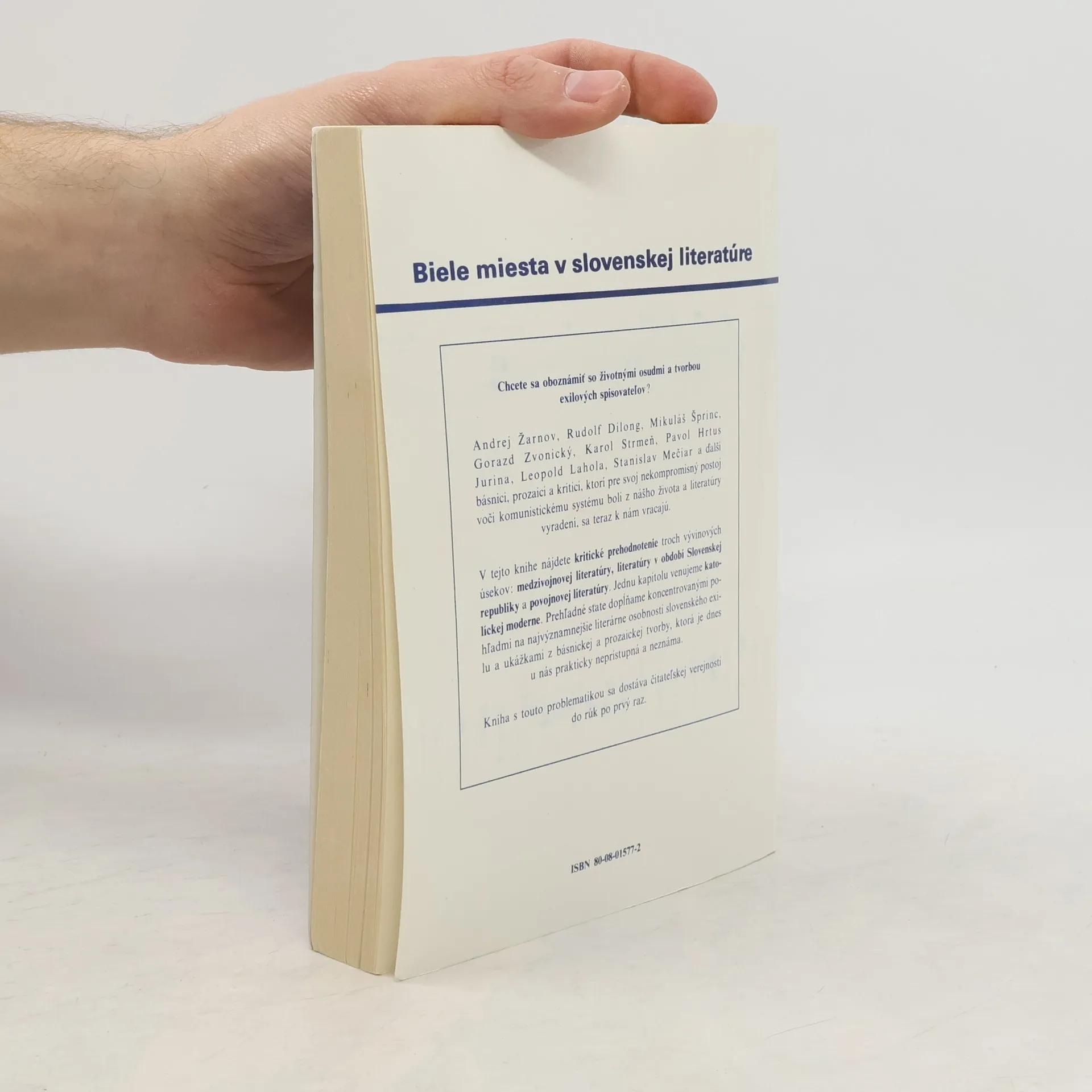 A.Žarnov, R.Dilong, M.Šprinc, G.Zvonický, K.Strmeň, P.Hrtus Jurina, L.Lahola, S.Mečiar... osudy a tvorba exilových autorov. Prehodnotenie 3 vývinových úsekov - medzivojnovej literatúry, literatúry období Slovenskej republiky, povojnovej literatúry. Jedna kapitola je venovaná Katolíckej moderne.