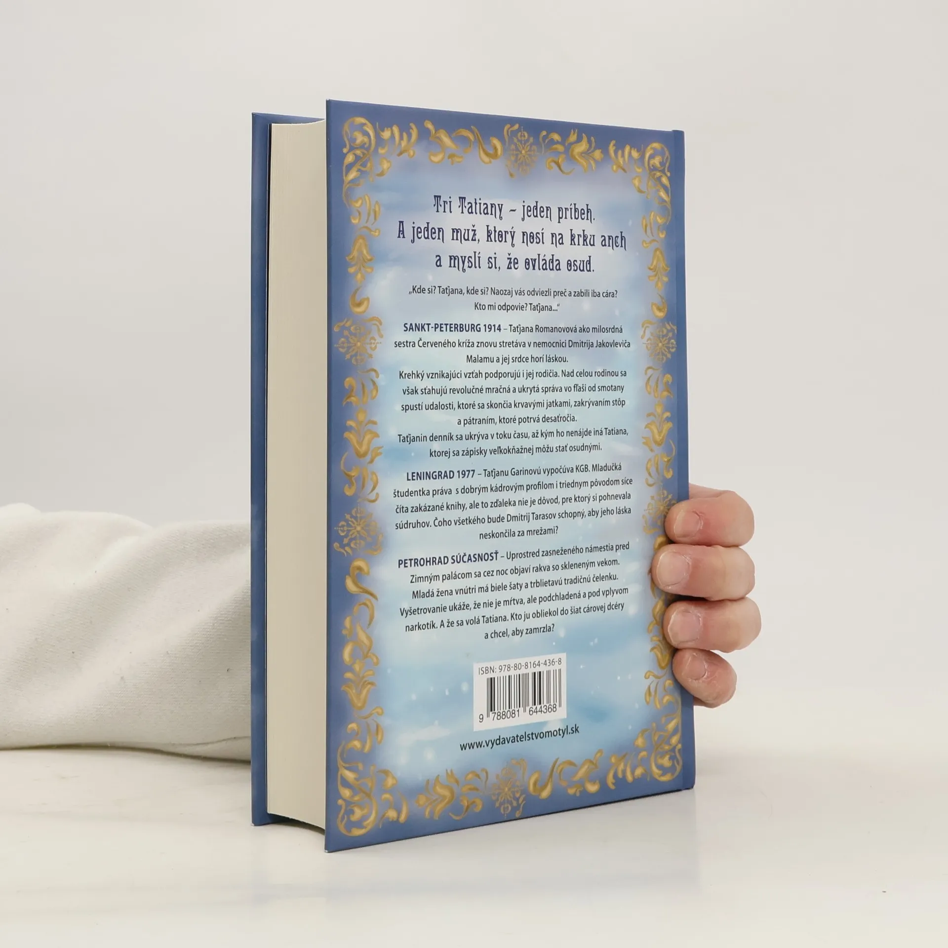 Tri Tatiany – jeden príbeh. A jeden muž, ktorý na krku nosí anch a myslí si, že ovláda osud. „Kde si? Taťjana, kde si? Naozaj vás odviezli preč a zabili iba cára? Kto mi odpovie? Taťjana..." Sankt-Peterburg 1914 – Taťjana Romanovová ako milosrdná sestra Červeného kríža znovu stretáva v nemocnici Dmitrija Jakovleviča Malamu a jej srdce horí láskou. Krehký vznikajúci vzťah podporujú i jej rodičia. Nad celou rodinou sa však sťahujú revolučné mračná a ukrytá správa vo fľaši od smotany spustí udalosti, ktoré sa skončia krvavými jatkami, zakrývaním stôp a pátraním, ktoré potrvá desaťročia. Taťjanin denník sa ukrýva v toku času, až kým ho nenájde iná Tatiana, ktorej sa zápisky veľkokňažnej môžu stať osudnými. Leningad 1977 – Taťjanu Garinovú vypočúva KGB. Mladučká študentka práva dobrým kádrovým profilom i triednym pôvodom síce číta zakázané knihy, ale to zďaleka nie je dôvod, pre ktorý si pohnevala súdruhov. Čoho všetkého bude Dmitrij Tarasov schopný, aby jeho láska neskončila za mrežami? Petrohrad súčasnosť – Uprostred zasneženého námestia pred Zimným palácom sa cez noc objaví rakva so skleneným vekom. Mladá žena vnútri má biele šaty a trblietavú tradičnú čelenku. Vyšetrovanie ukáže, že nie je mŕtva, ale podchladená a pod vplyvom narkotík. A že sa volá Tatiana. Kto ju obliekol do šiat cárovej dcéry a chcel, aby zamrzla? Tento príbeh je inšpirovaný skutočnými udalosťami.
