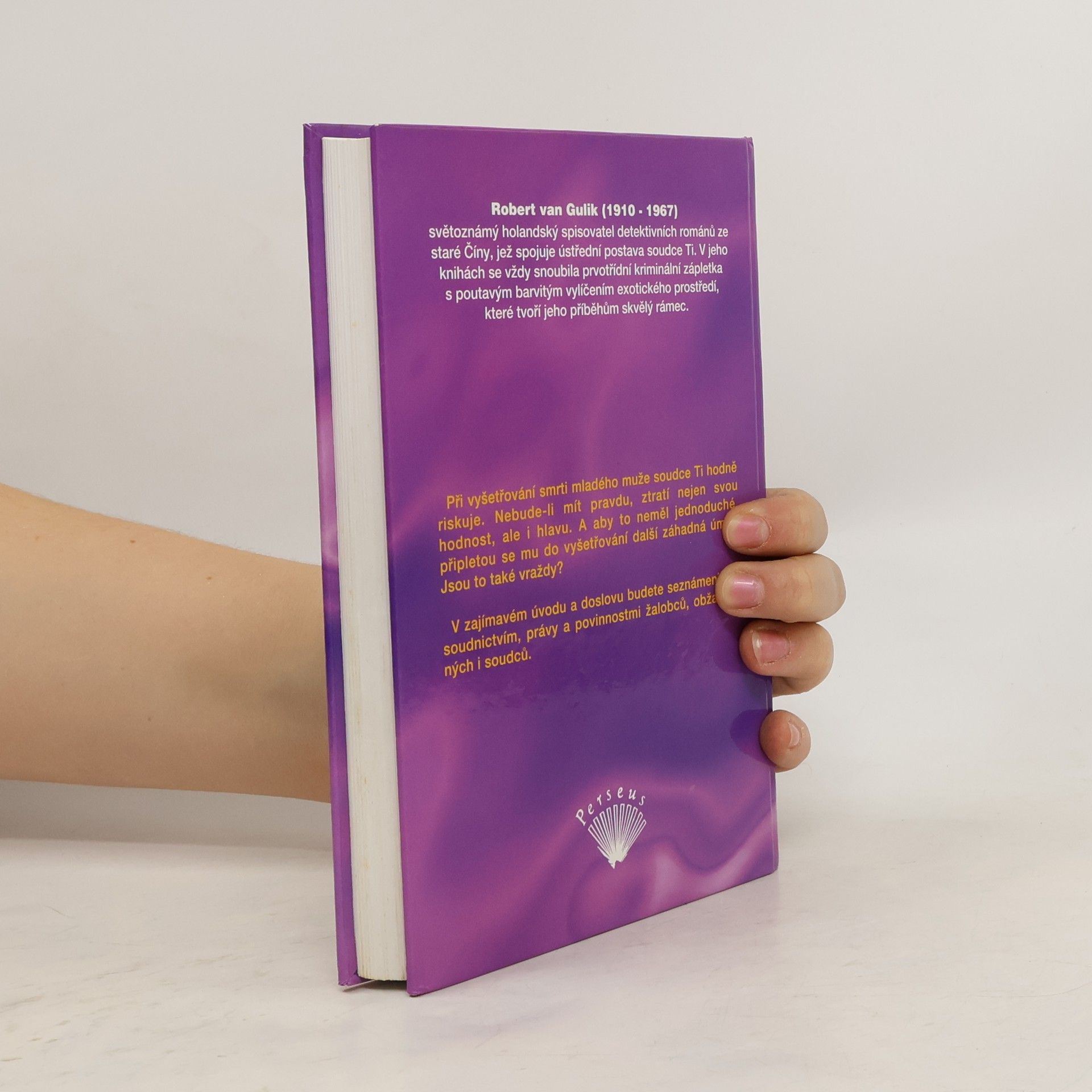 Při vyšetřování smrti mladého muže soudce Ti hodně riskuje. Nebude-li mít pravdu, ztratí nejen svou hodnost, ale i hlavu. A aby to neměl jednoduché, připletou se mu do vyšetřování další záhadná úmrtí. Jsou to také vraždy? Slavné případy soudce Ti je anotovaný překlad knihy napsané v osmnáctém století. Překladatel byl Robert van Gulik a originál byl tištěný v Tokiu. Později van Gulik navázal dalšími, tentokrát již svými příběhy se soudcem Ti.