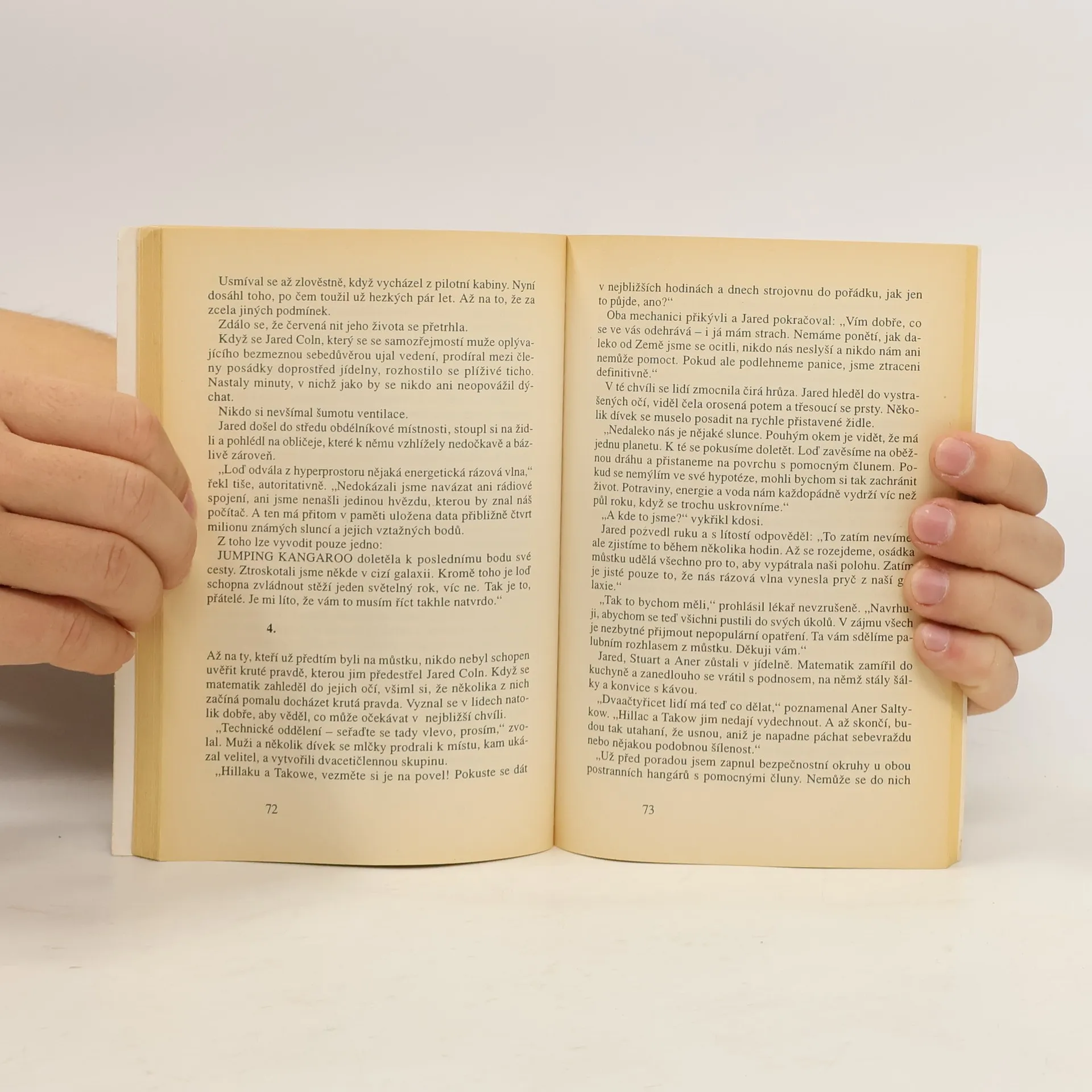 Členové posádky vesmírné lodi JUMPING KANGAROO procitnou ze šoku způsobeného tranzicí a zjistí, že se nacházejí v neznámé mlhovině, které zatím nedosáhl žádný člověk. 42 mužů a žen sem z odlehlého koutu vesmíru zavála nešťastná náhoda a naděje, že se vrátí, se rovná nule. Mohou přežít pouze v případě, že se vzdají svých pozemských tělesných schránek... celý text