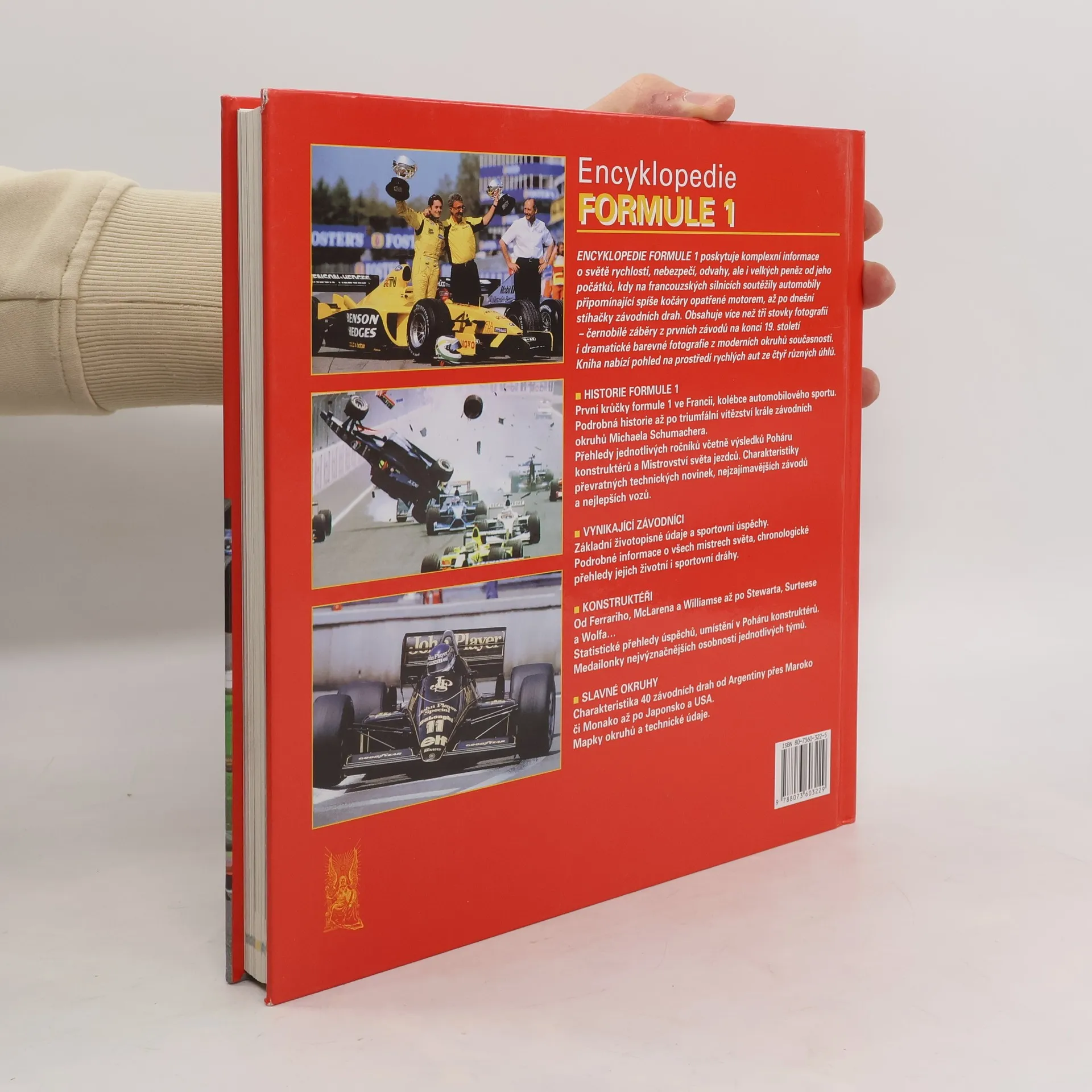 Encyklopedie Formule 1 poskytuje komplexní informace o světě rychlosti, nebezpečí, odvahy, ale i velkých peněz od jeho počátků, kdy na francouzských silnicích soutěžily automobily připomínající spíše kočáry opatřené motorem, až po dnešní stíhačky závodních drah. Obsahuje více než tři stovky fotografií - černobílé záběry z prvních závodů na konci 19. století i dramatické barevné fotografie z moderních okruhů současnosti. Kniha nabízí pohled na prostředí rychlých aut ze čtyř různých úhlů.