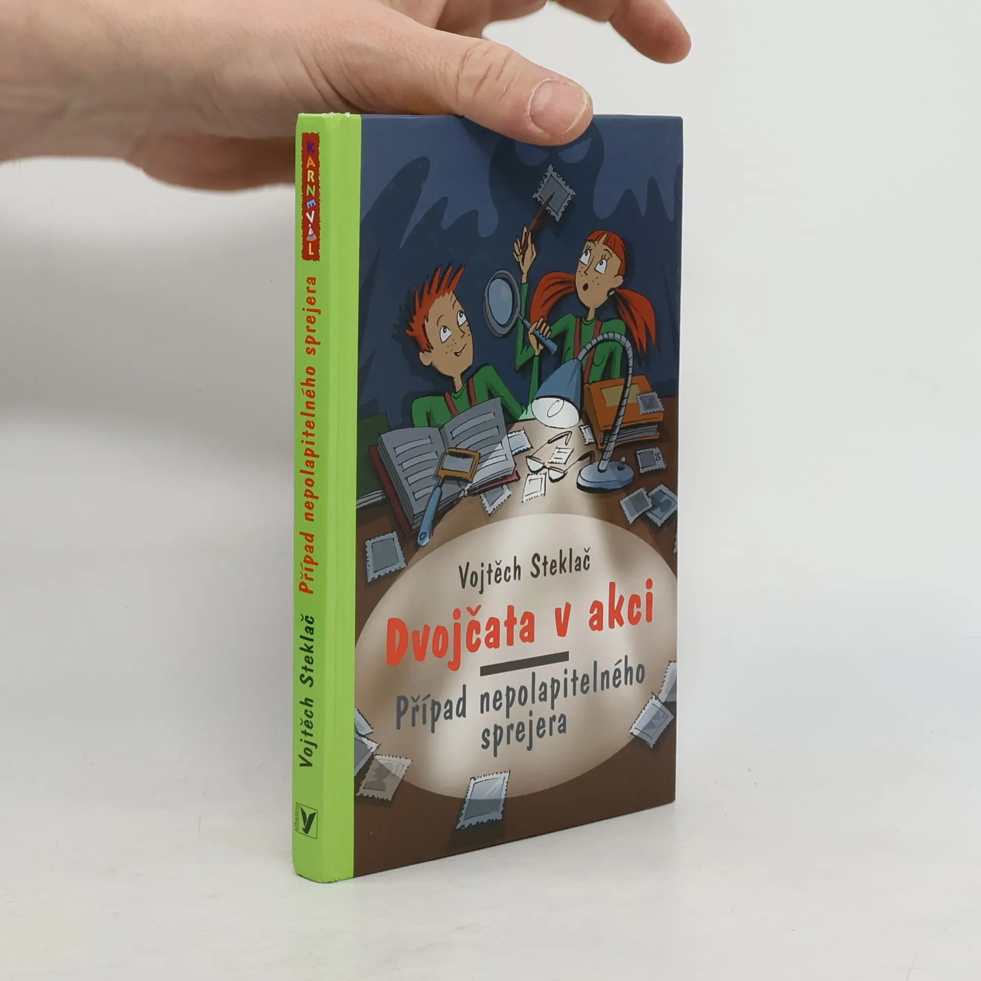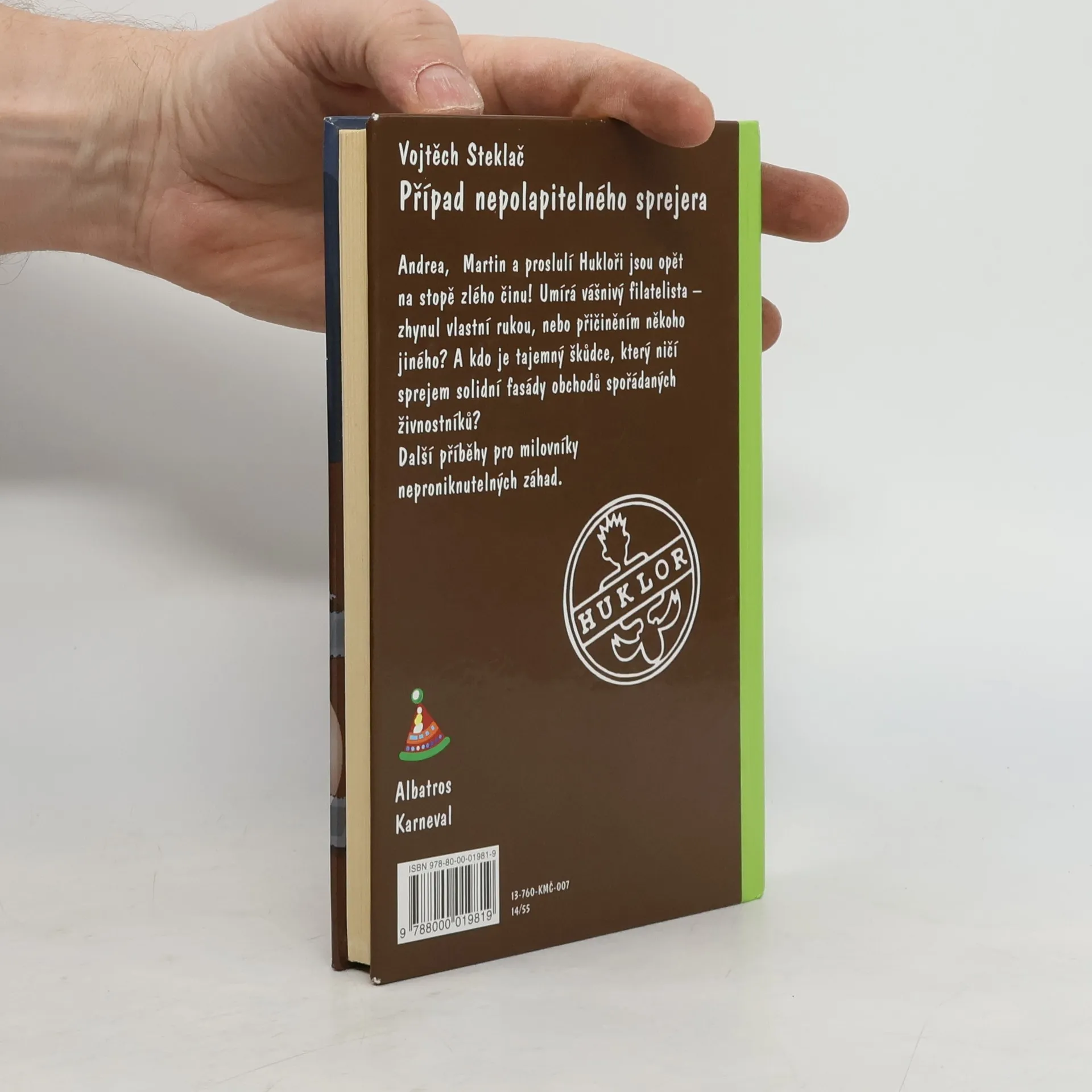 Další dva případy pro detektivní kancelář Huklor: Smrt vášnivého filatelisty a neznámý sprejer v detektivních příbězích pro děti kolem 10 let. Starší bratr Pana Mautnera spáchal sebevraždu a on neví, proč. A tak se detektivní kancelář Huklor (Martin, Andrea, Kvído a Hugo) ujímá případu. Druhý případ se týká neznámého sprejera, který ničí fasády domů v okolí. Tady spíš než velké dobrodružstí čeká Martina a Andreu dlouhé sledování možných pachatelů. Druhý příběh z řady Dvojčata v akci. Volně navazuje na knihu Poklad hraběte Domanína.