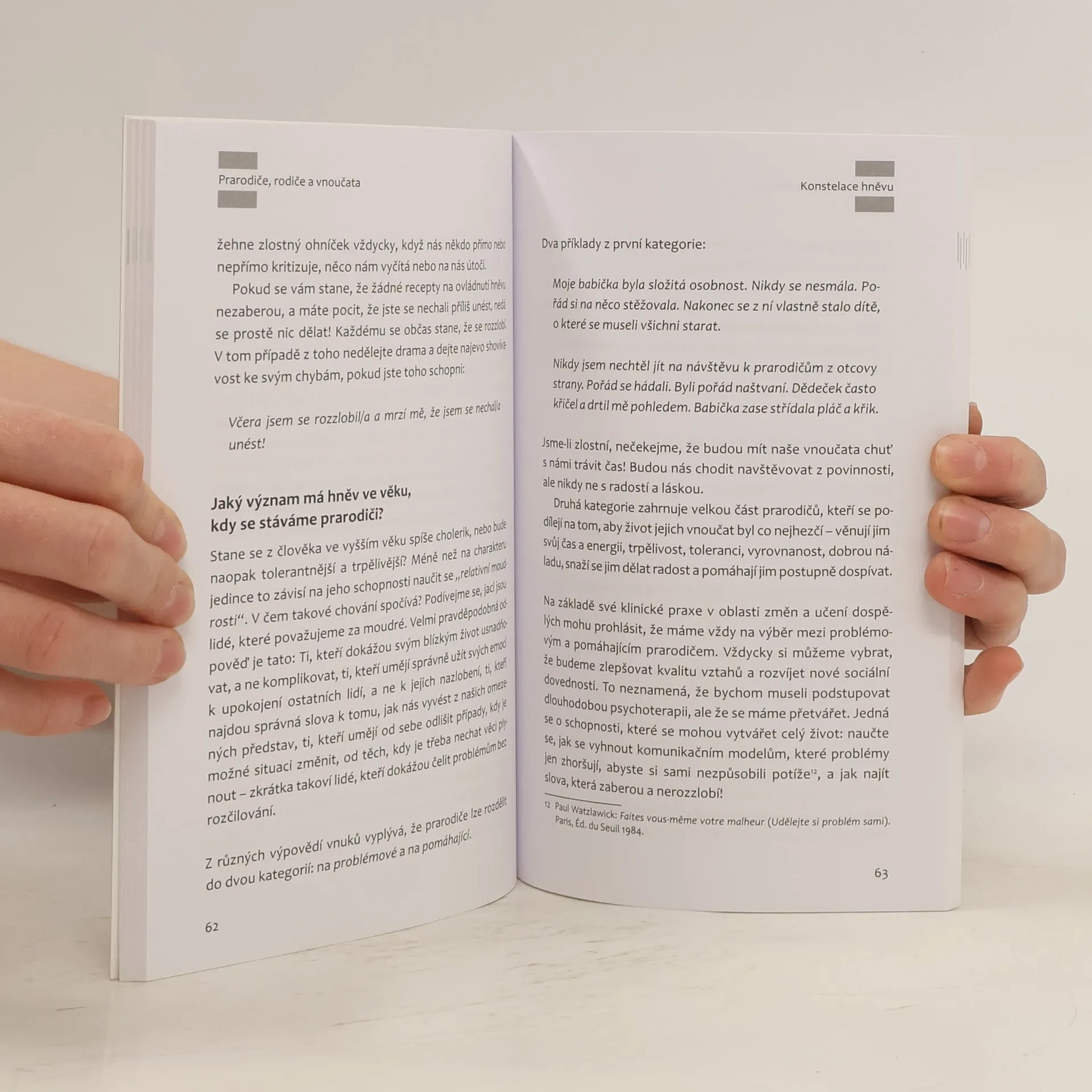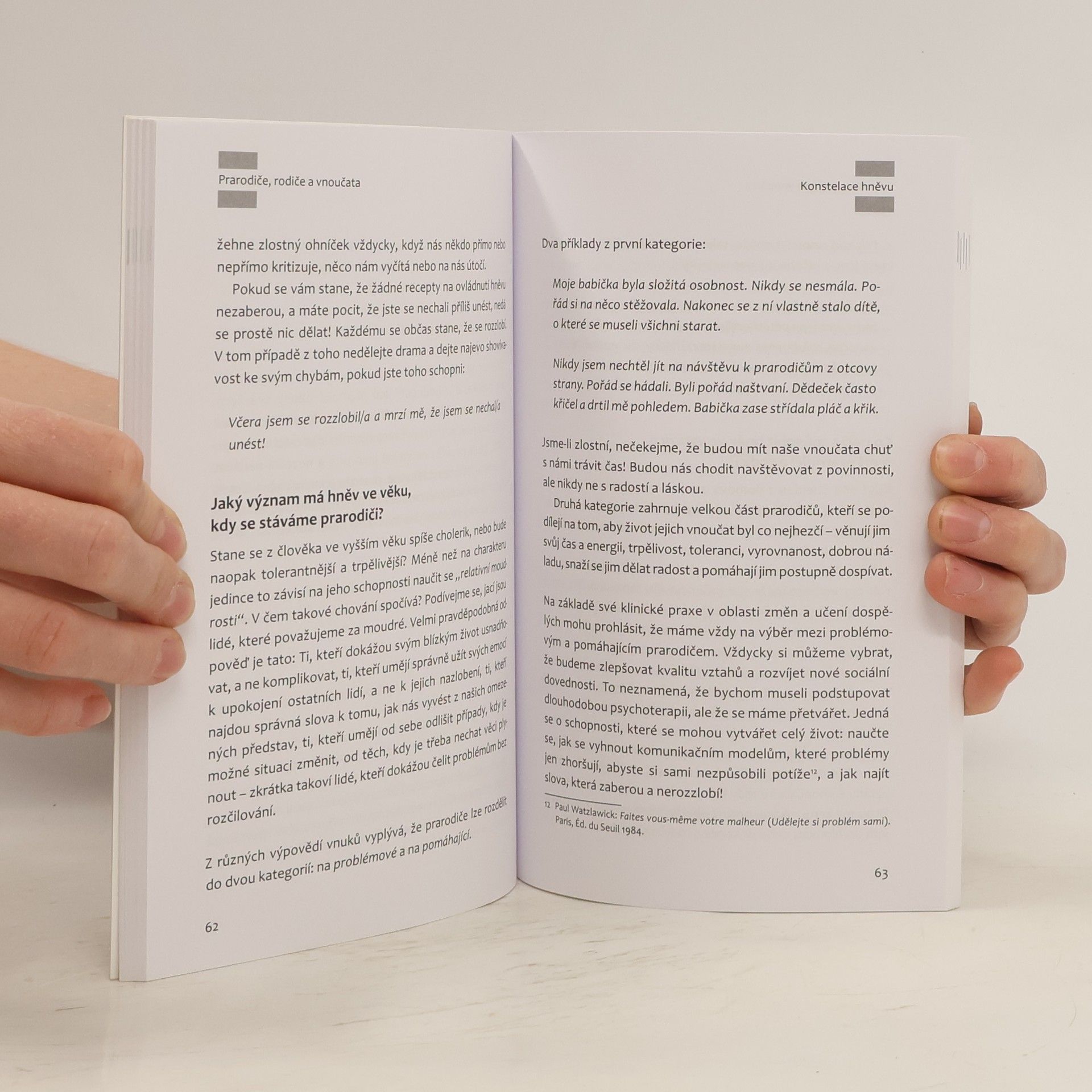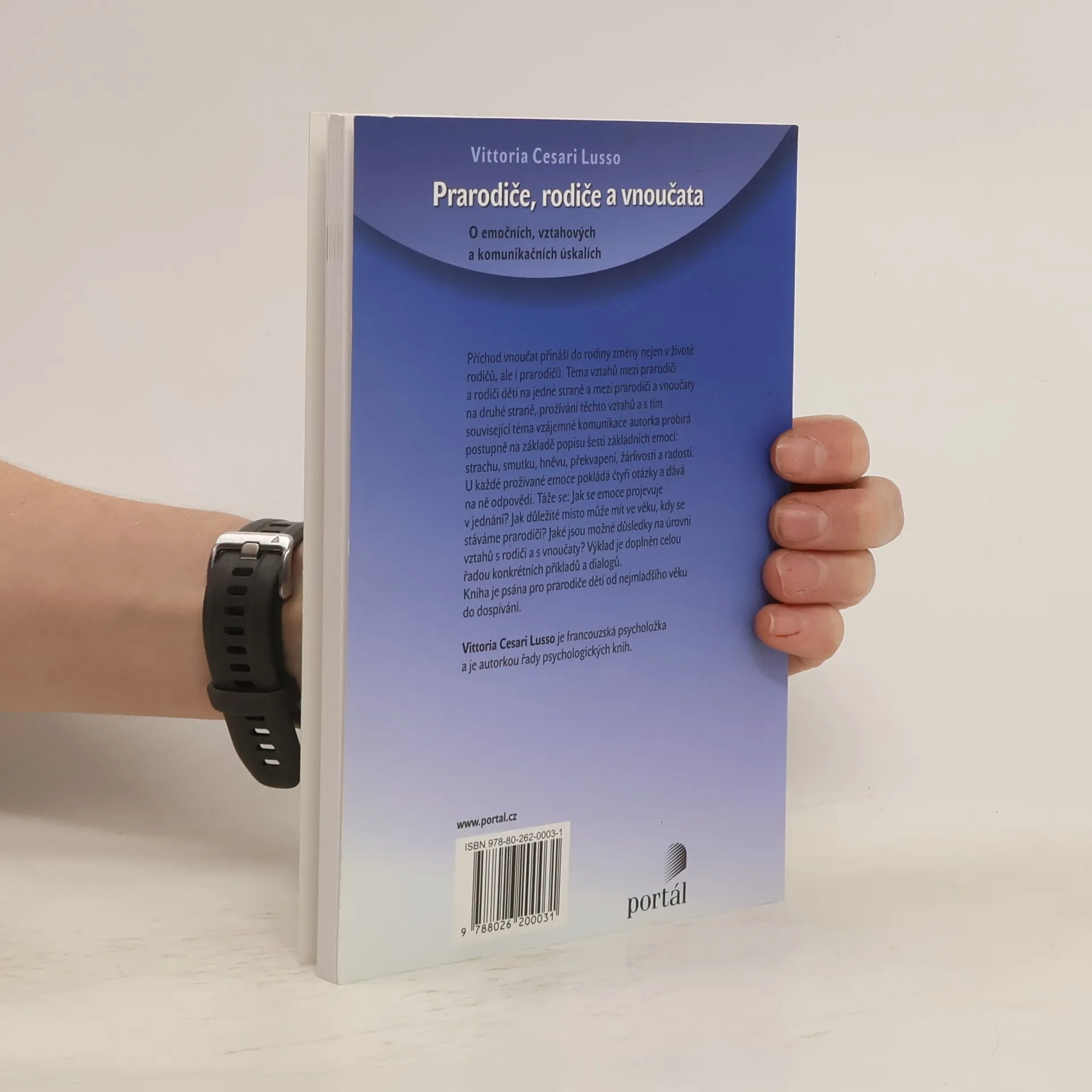 Příchod dětí přináší do rodiny změny nejen v životě rodičů, ale i prarodičů. Změny se často vyskytnou i ve vzájemných vztazích mezi prarodiči a rodiči dětí na jedné straně a mezi prarodiči a vnoučaty na druhé straně. Prožívání těchto vztahů a zároveň s tím související téma vzájemné komunikace autorka probírá postupně podle prožívání šesti základních emocí: strachu, smutku, hněvu, překvapení, žárlivosti, radosti. U každé prožívané emoce se ptá: Jak se emoce projevuje v jednání? Jak důležité místo může mít ve věku, když se stáváme prarodiči? Jaké jsou možné důsledky na úrovni vztahů s rodiči a na úrovni vztahů s vnoučaty? Z tohoto základního schématu se rozvíjejí podněty k tomu, co podporuje dobré mezigenerační vztahy i co působí vhodně na děti a jejich vývoj i osobnost. Výklad je doplněn celou řadou konkrétních příkladů a dialogů. Knihu ocení prarodiče i rodiče dětí od nejmladšího věku do dospívání. Vitoria Cesari Lusso je francouzská psycholožka a autorka řady psychologických knih.
