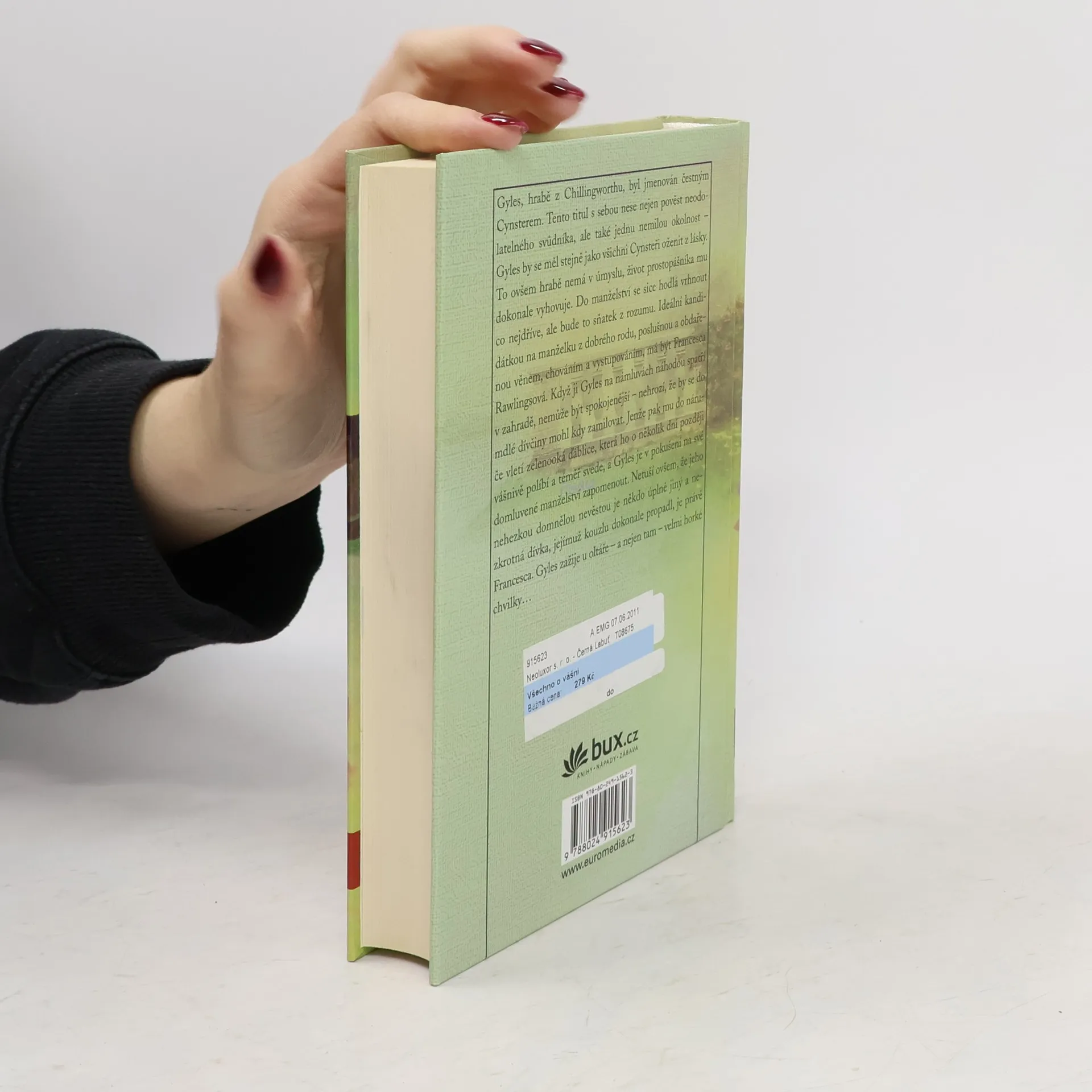 Gyles, hrabě z Chillingworthu, byl jmenován čestným Cynsterem. Již brzy se chystá oženit, ale má to být sňatek z rozumu a ideální kandidátkou na manželku z dobrého rodu, poslušnou a obdařenou věnem, je Francesca Rawlingsová. Když ji Gyles na námluvách náhodou spatří v zahradě, nemůže být spokojenější – nehrozí, že by se do mdlé dívčiny mohl kdy zamilovat. Jenže pak mu do náruče vletí půvabná zelenooká ďáblice a Gyles je v pokušení na své domluvené manželství zapomenout. Netuší ovšem, že jeho nehezkou domnělou nevěstou je někdo úplně jiný a nezkrotná dívka, jejímuž kouzlu dokonale propadl, je právě Francesca…