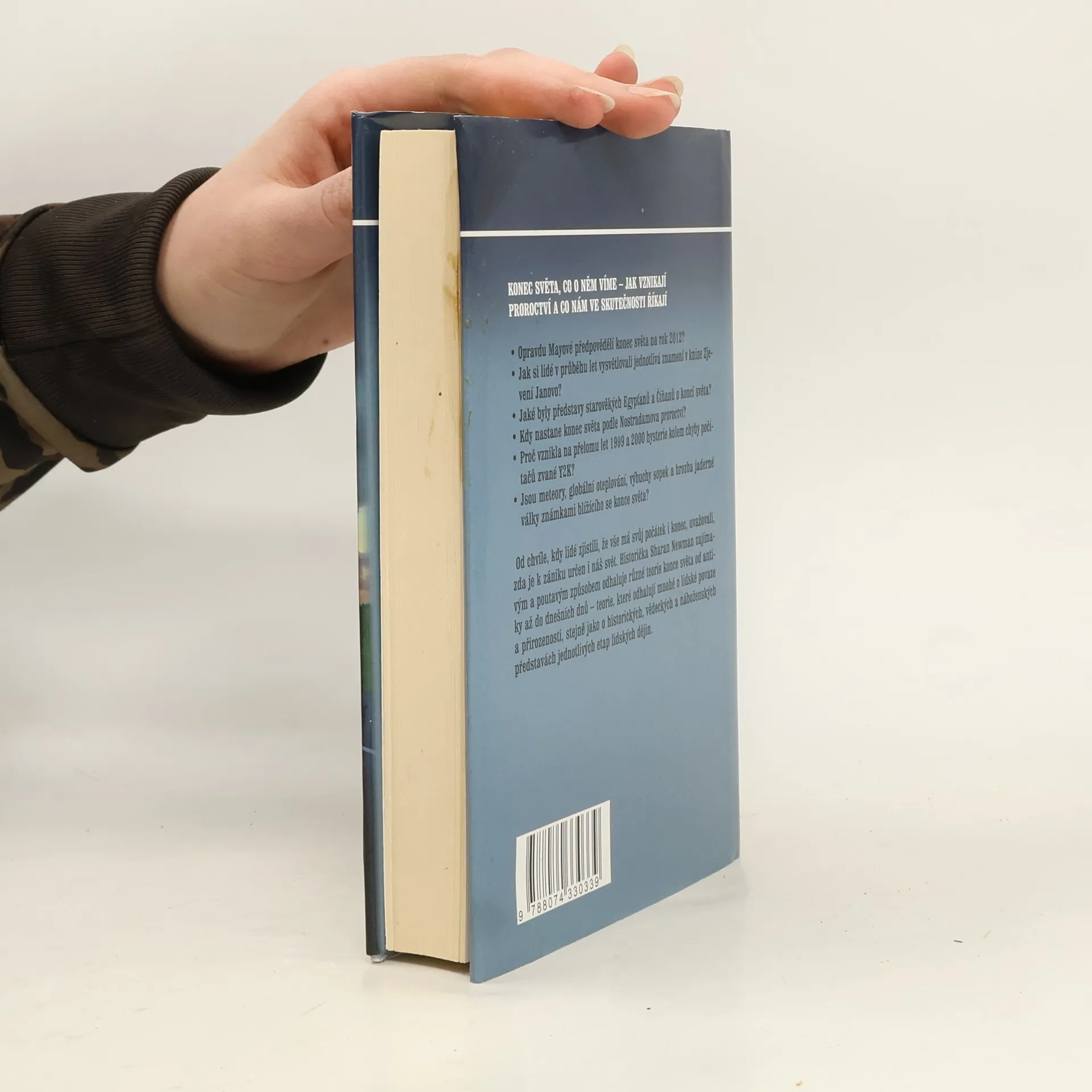 Konec světa, co o něm víme – jak vznikají proroctví a co nám ve skutečnosti říkají • Opravdu Mayové předpověděli konec světa na rok 2012? • Jak si lide v průběhu let vysvětlovali jednotlivá znamení v knize Zjeveni Janovo? • Jaké byly představy starověkých Egypťanů a Číňanů o konci světa? • Kdy nastane konec světa podle Nostradamova proroctví? • Proč vznikla na přelomu let 1999 a 2000 hysterie kolem chyby počítačů zvané Y2K? • Jsou meteory, globální oteplování, výbuchy sopek a hrozba jaderné války známkami blížícího se konce světa? Od chvíle, kdy lide zjistili, že vše má svůj počátek i konec, uvažovali, zda je k zániku určen i náš svět. Historička Sharan Newman zajímavým a poutavým způsobem odhaluje různé teorie konce světa od antiky až do dnešních dnů – teorie, které odhalují mnohé o lidské povaze a přirozenosti, stejně jako o historických, vědeckých a náboženských představách jednotlivých etap lidských dějin.