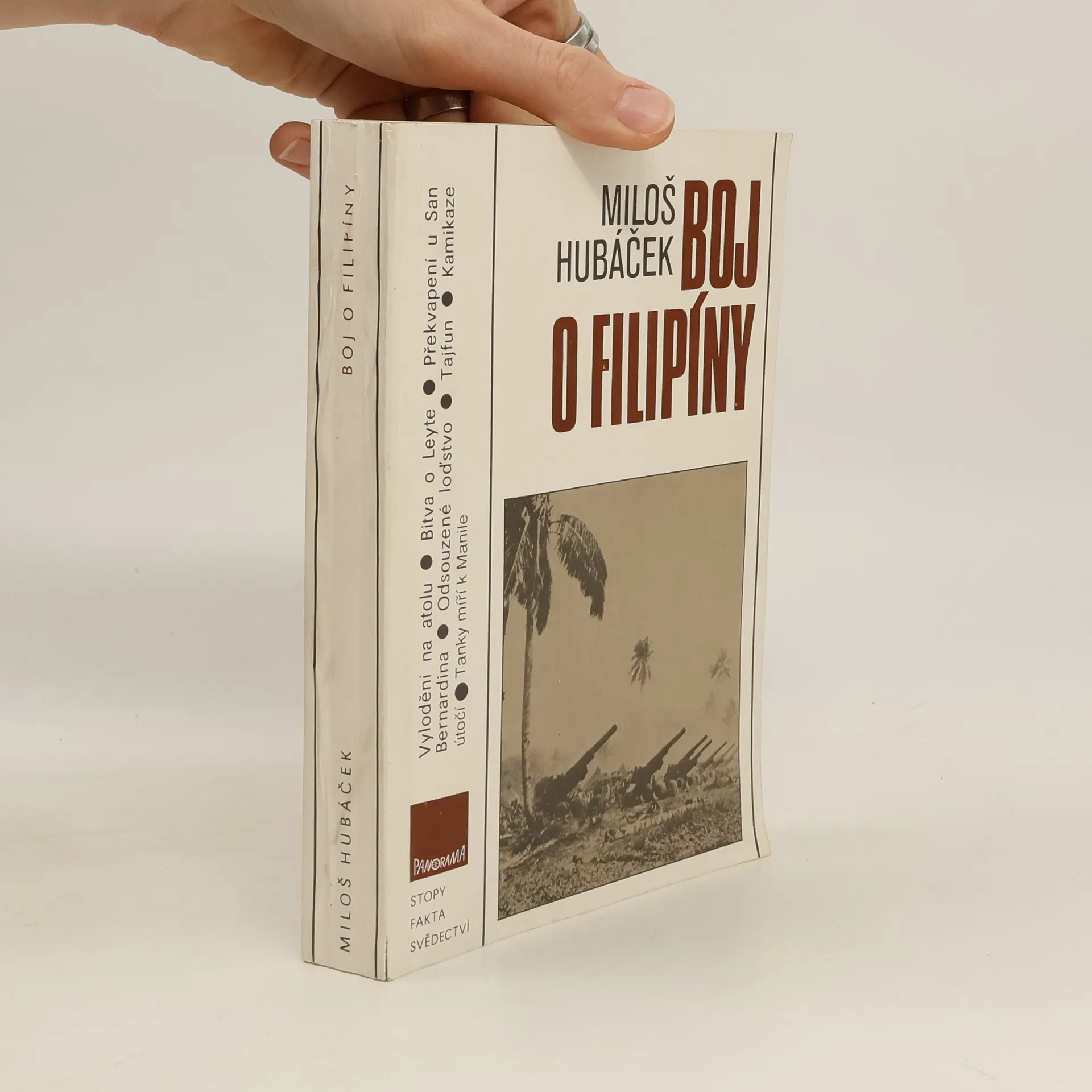 Čtvrtá část ze série knih, které mapují historii námořních bojů v Pacifiku za druhé světové války. Vylodění na atolu; Bitva o Leyte; Překvapení u San Bernardina; Odsouzené loďstvo; Tajfun; Kamikaze útočí; Tanky míří k Manile V polovině roku 1944 ztrácely japonské armády v Tichomoří jednu pozici za druhou. Po dobytí strategicky významných ostrovů v Marianách bylo ve spojeneckých štábech rozhodnuto, že příští úder bude směřovat proti Filipínám. Pro Japonce se měla očekávaná pozemní a námořně letecká bitva změnit v rozhodující pokus zvrátit celkovou nepříznivou situaci. Přes masové nasazení sebevražedných pilotů kamikaze prohráli Japonci na souši a v největším námořním střetnutím všech dob i na moři. Za bojů o Leyte byl zničen výkvět japonských ozbrojených sil a po třech letech od Pearl Harboru již Japonci nedokázali materiální a lidské ztráty takového rozsahu nahradit. Mapy zhotovila Milada Zpěváková. 1. vydání