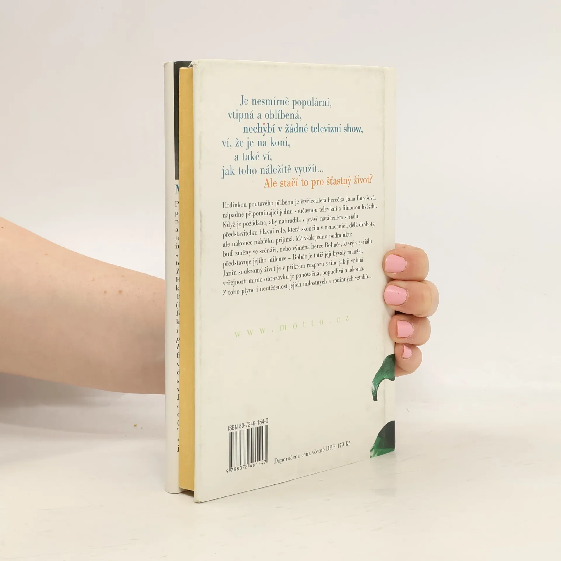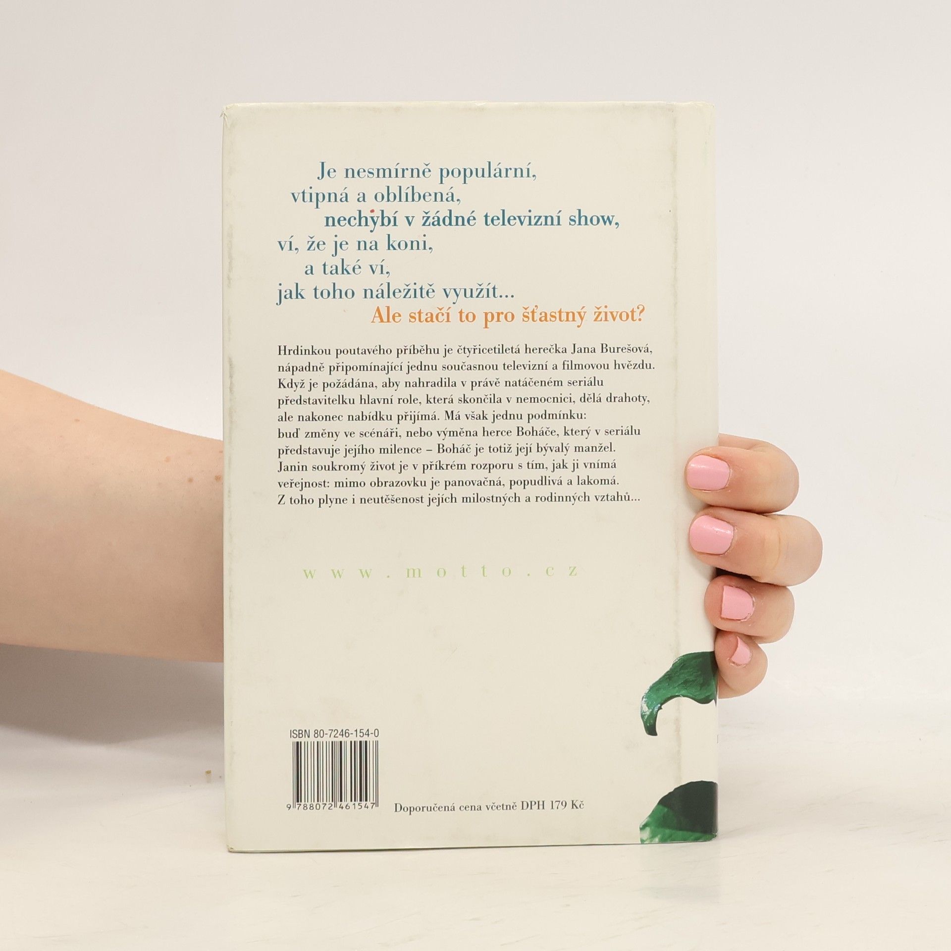 Televizní román Hrdinkou poutavého příběhu je čtyřicetiletá herečka Jana Burešová, nápadně připomínající jednu současnou televizní a filmovou hvězdu. Když je požádána, aby nahradila v právě natáčeném seriálu představitelku hlavní role, která skončila v nemocnici, dělá drahoty, ale nakonec nabídku přijímá. Má však jednu podmínku: buď změny ve scénáři, nebo výměna herce Boháče, který v seriálu představuje jejího milence - Boháč je totiž její bývalý manžel. Janin soukromý život je v příkrém rozporu s tím, jak ji vnímá veřejnost. Z toho plyne i neutěšenost jejích milostných a rodinných vztahů …