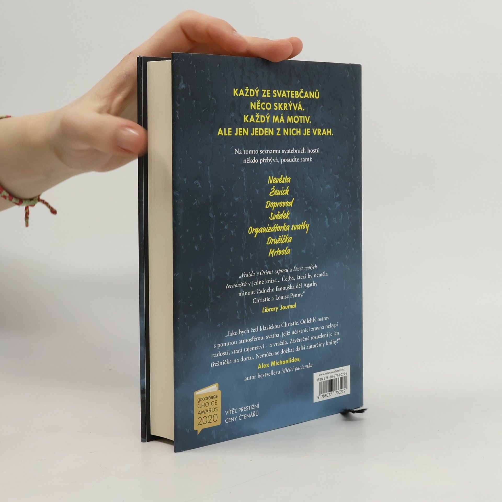 Nevěsta. Doprovod. Svědek. Organizátorka svatby. Družička. Mrtvola. Na ostrov u irského pobřeží se sjíždějí hosté, aby oslavili den, kdy dva lidé spojí své životy v jeden. Ženich: televizní hvězda na vzestupu, pohledný a okouzlující. Nevěsta: majitelka časopisu, inteligentní a ambiciózní. Hvězdná svatba jako ze žurnálu: šaty od návrháře, odlehlé místo, luxusní výslužka, speciální whisky. Občas tu sice vypadává signál a moře vypadá trochu neklidně, ale vše je naplánováno do sebemenšího detailu a poběží to jako na drátkách. Dokonalost je ale výsadou plánů, lidé jsou příliš lidští. Jen co bouchne šampaňské a rozpoutá se všeobecné veselí, s gratulacemi se začnou mísit staré křivdy a malicherná žárlivost. Ženichovi bývalí spolužáci se pustí do pijácké hry ze školních let. Družička si ne zcela náhodnou poničí šaty. Nevěstin nejstarší přítel pronese až nevhodně láskyplný přípitek. A pak se objeví tělo. Kdo novomanželům nepřál štěstí? A co je snad ještě důležitější, proč?