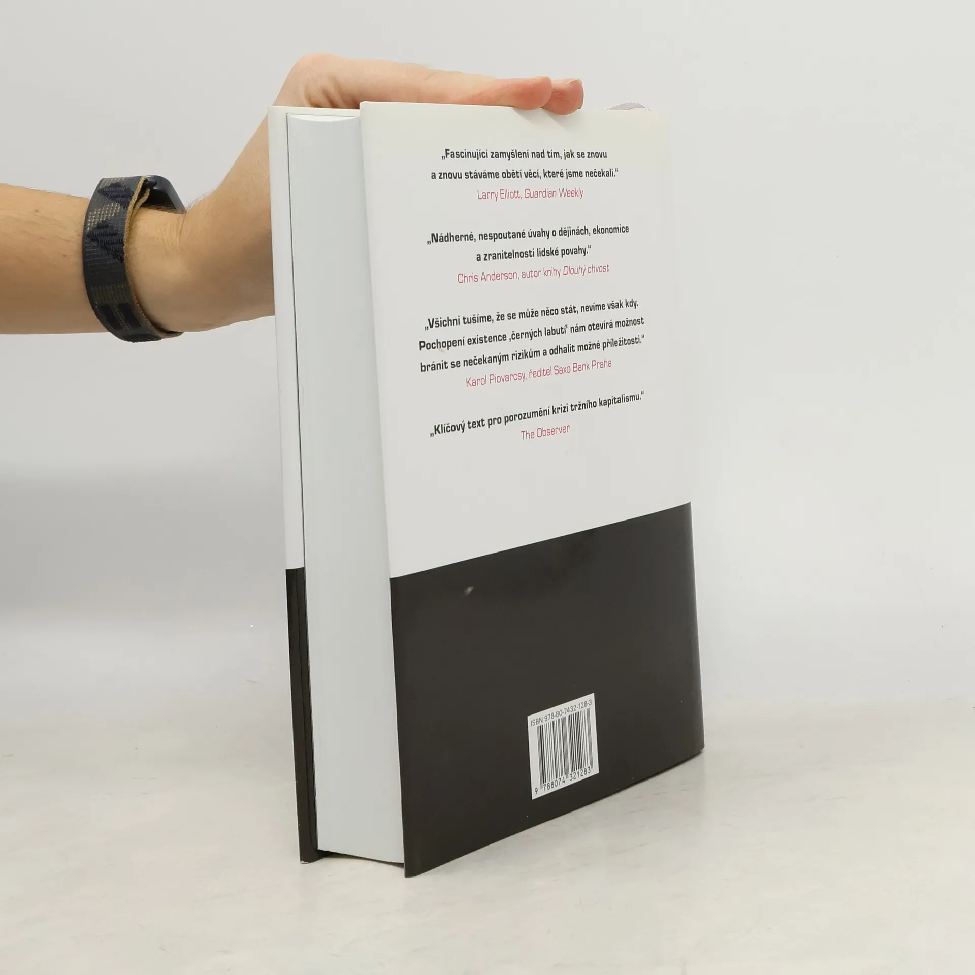Následky vysoce nepravěpodobných událostí Bestseller amerického akademika a investičního poradce libanonského původu analyzuje fenomén „černých labutí“, tj. nepředvídaných jevů a událostí s významným dopadem na život jedince nebo celé společnosti, jakým byl např. teroristický útok z 11. září 2001, fenomenální úspěch společnosti Google či nedávná globální finanční a ekonomická krize. Autor – jeden z mála odborníků, kteří nástup krize předvídali – věří, že příčinou naší nepřipravenosti na podobné zlomové události je především setrvačnost našeho myšlení v podobě přílišné důvěry ve statistiky a prognostiky, přehnaného kategorizování, hledání „logiky“ vývoje či soustřeďování se na specifika tam, kde bychom měli přemýšlet spíše v obecných kontextech. Jeho kniha, vyzývající k tomu, abychom přehodnotili náš ustálený pohled na svět a přiznali si, jak málo o něm víme, patří dnes k nejdiskutovanějším pracím ve svém žánru, deníkem Times byla označena za jedno z nejvlivnějších děl posledních šedesáti let a díky autorovu širokému rozhledu, smyslu pro humor a zdravé provokativnosti je i velkým čtenářským zážitkem.
