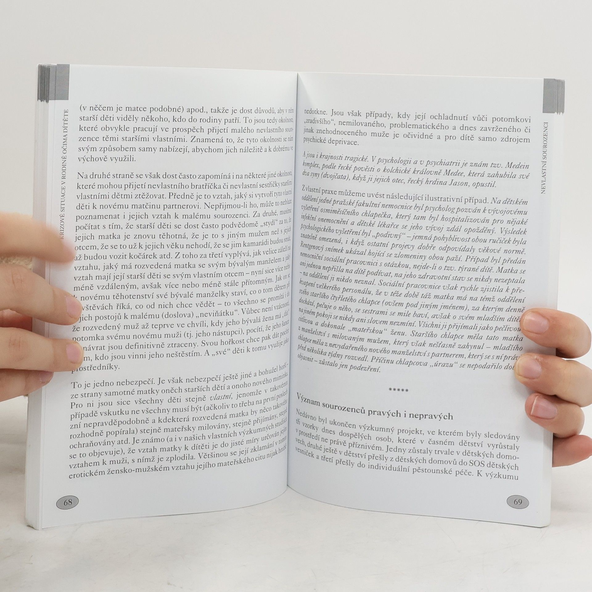 Psychologický pohled na trápení, která dětem způsobují konflikty a problematické situace v rodině. Autoři - renomovaní čeští odborníci zabývající se psychologií dítěte a rodinnými vztahy - se snaží ukázat nejčastější krizové situace v rodině, které přinášejí dětem trápení a způsobují dětská traumata. Rozvod, nemoc, úmrtí člena rodiny, příchod nového partnera či nevlastních sourozenců do rodiny, ale také nevěra rodičů, žárlivost, nesoulad v rodině, případně i na první pohled celkem obyčejné stěhování - to vše se dotýká dětské psychiky a dítě se s tím musí nějak vypořádat. Kniha popisuje tyto situace z pohledu dítěte, dává je do širších souvislostí s vývojovou psychologií dítěte a dokládá příklady z praxe včetně dětských kreseb, které mnohdy jasně vysvětlí to, co dítě nedokáže slovy popsat. Snaha porozumět dítěti v nelehkých situacích, do kterých se dostává "vinou" svých nejbližších a zajistit co nejlepší cestu k jejich nápravě, to je cílem této publikace. Psychologické výklady doplňují konkrétní rady pro rodiče a osoby pečující o děti. Velmi kvalitní, zajímavá kniha, odborné informace jsou podávány srozumitelně i pro laika.... celý text