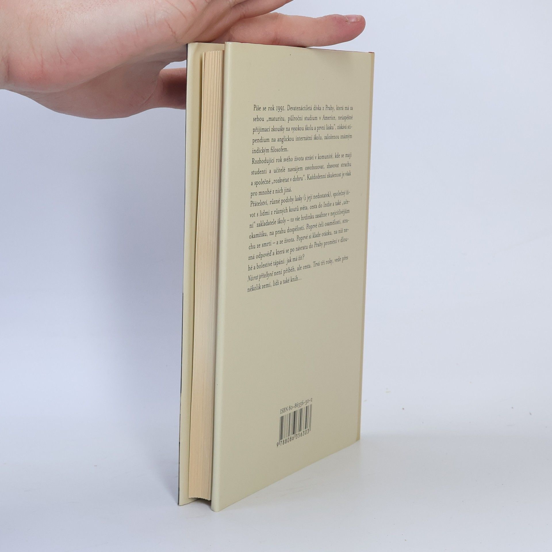 Píše se rok 1991. Devatenáctiletá dívka z Prahy, která má za sebou "maturitu, půlroční studium v Americe, neúspěšné přijímací zkoušky na vysokou školu a první lásku", získává stipendium na anglickou internátní školu, založenou známým indickým 0losofem. Rozhodující rok svého života stráví v komunitě, kde se mají studenti a učitelé navzájem osvobozovat, zbavovat strachu a společně "rozkvétat v dobru". Každodenní zkušenost je však pro mnohé z nich jiná. Přátelství, různé podoby lásky (i její nedostatek), společný život s lidmi z různých koutů světa, cesta do Indie a také "učení" zakladatele školy to vše hrdinku zasáhne v nejcitlivějším okamžiku, na prahu dospělosti. Poprvé čelí osamělosti, strachu ze smrti a ze života. Poprvé si klade otázku, na niž nezná odpověď a která se po návratu do Prahy promění v dlouhé a bolestivé tápání: jak má žít? Návrat přítelkyně není příběh, ale cesta. Trvá tři roky, vede přes hodně zemí, lidí a také knih. Na jejím konci nečeká odpověď jen její náznak.
