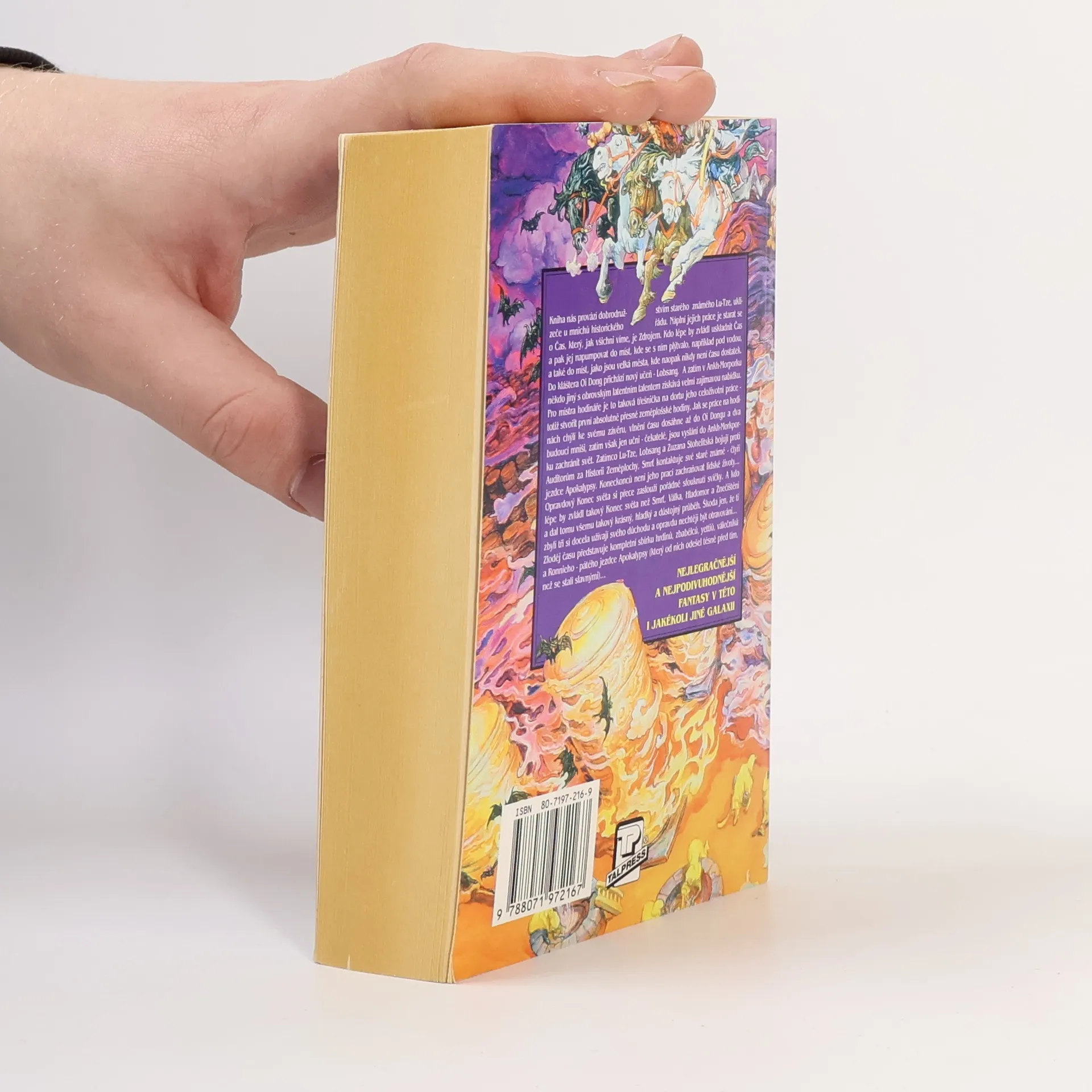 Kniha nás provází dobrodružstvím Lu-Tze, uklízeče u mnichů historického řádu, kteří se starají o Čas, Zdrojem všeho. Lu-Tze je mistr v uskladnění Času a jeho distribuci do míst, kde se plýtvá, jako jsou velká města. Do kláštera Oi Dong přichází nový učeň Lobsang, zatímco v Ankh-Morporku získává talentovaný hodinář zajímavou nabídku: vytvořit první absolutně přesné zeměplošské hodiny. Jak se blíží dokončení hodin, vlnění času zasahuje Oi Dong, a dva budoucí mniši, zatím učni, jsou vysláni do Ankh-Morporku, aby zachránili svět. Lu-Tze, Lobsang a Zuzana Stohelitská čelí Auditorům za Historii Zeměplochy, zatímco Smrť kontaktuje čtyři jezdce Apokalypsy. Jeho úkolem není zachraňovat životy, ale zajistit důstojný Konec světa. I když si tři jezdci užívají důchodu, Smrť ví, že Konec světa si zaslouží pořádné sfouknutí svíčky. Kniha představuje pestrou paletu postav, včetně zbabělců, yettiů a Ronnieho, pátého jezdce Apokalypsy, který odešel těsně před jejich slávou. Úžasná Zeměplocha, kniha 26., přeložil Jan Kantůrek.