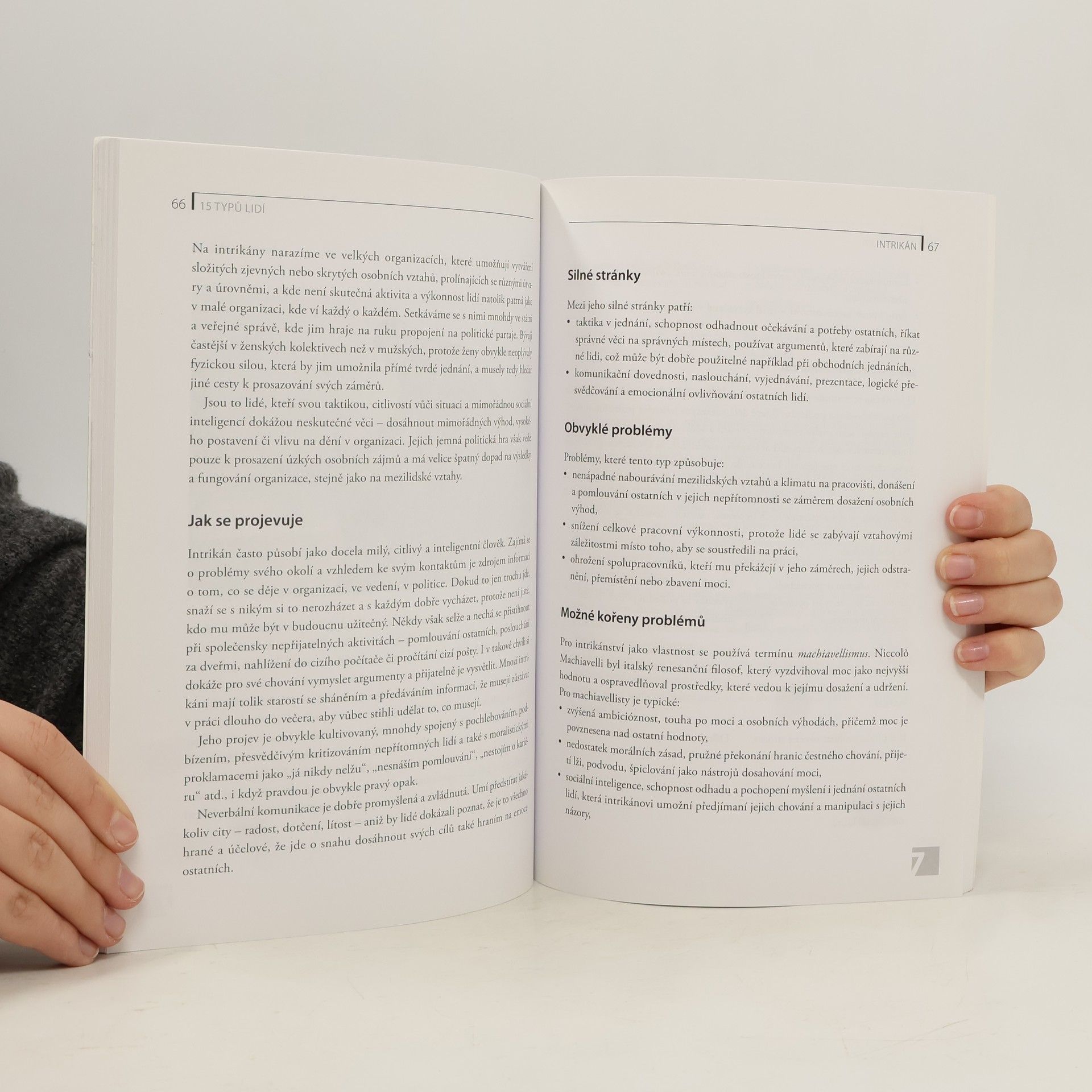 Jak efektivně komunikovat s intrikánem, perfekcionistou či plachým člověkem? Jak poznat neschopného, fantastu či nepostradatelného? Jaké mají silné stránky? Jaké problémy způsobuje arogantní typ či byrokrat? Jak reagovat na jejich tvrzení? Publikace je určena zejména vedoucím pracovníkům, ale ocení ji všichni ti, kteří chtějí úspěšněji zvládat komunikaci a jednání s jinými lidmi. V úvodním testu zjistíte, jakým typem či kombinací typů je určitý člověk, a poté se dozvíte, jak se daný typ člověka projevuje, jaké jsou jeho silné stránky či naopak jaké problémy způsobuje, proč se chová právě určitým způsobem, a jak s daným člověkem s úspěchem jednat, jak jej nejlépe vést a motivovat. Čtivý text doplňují fotografie zachycující jednotlivé typy.